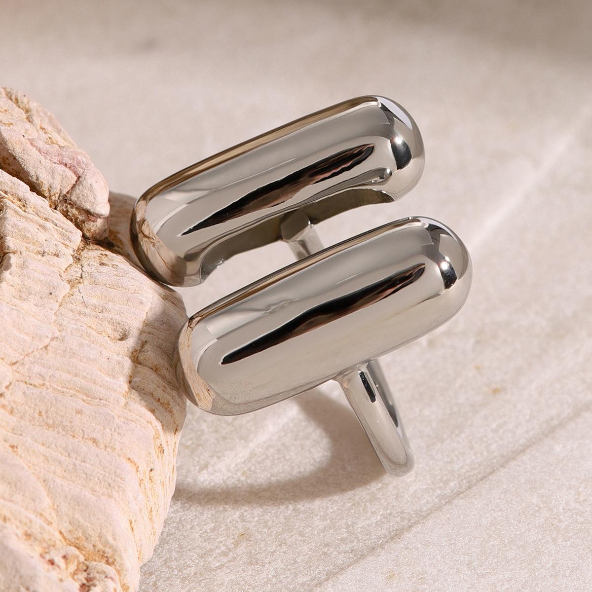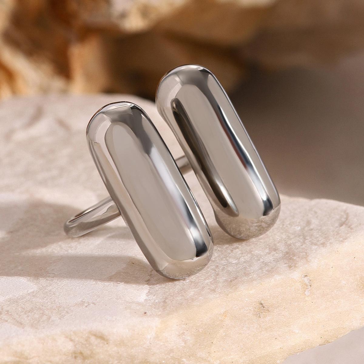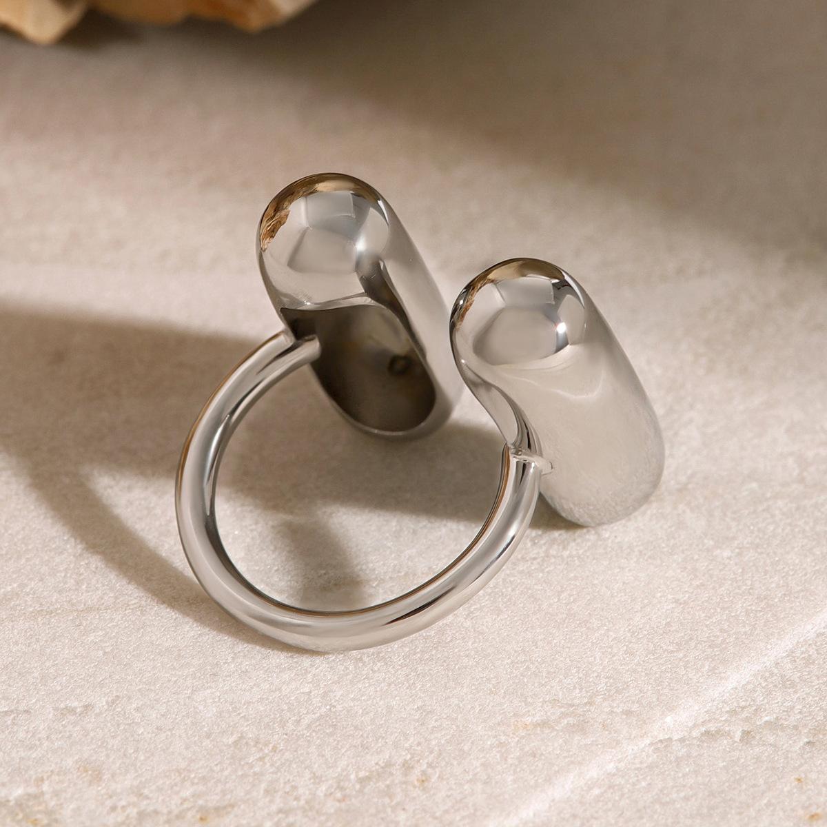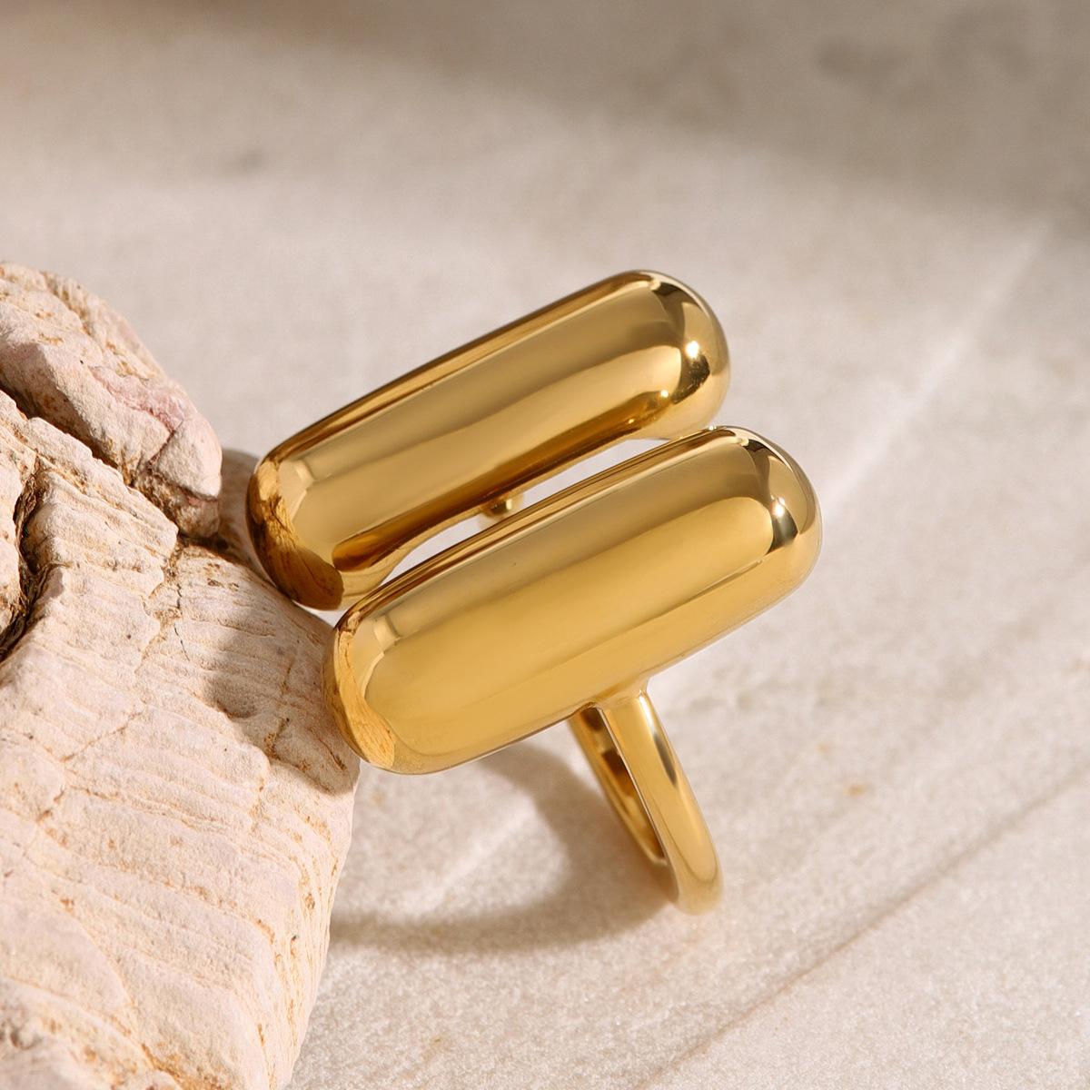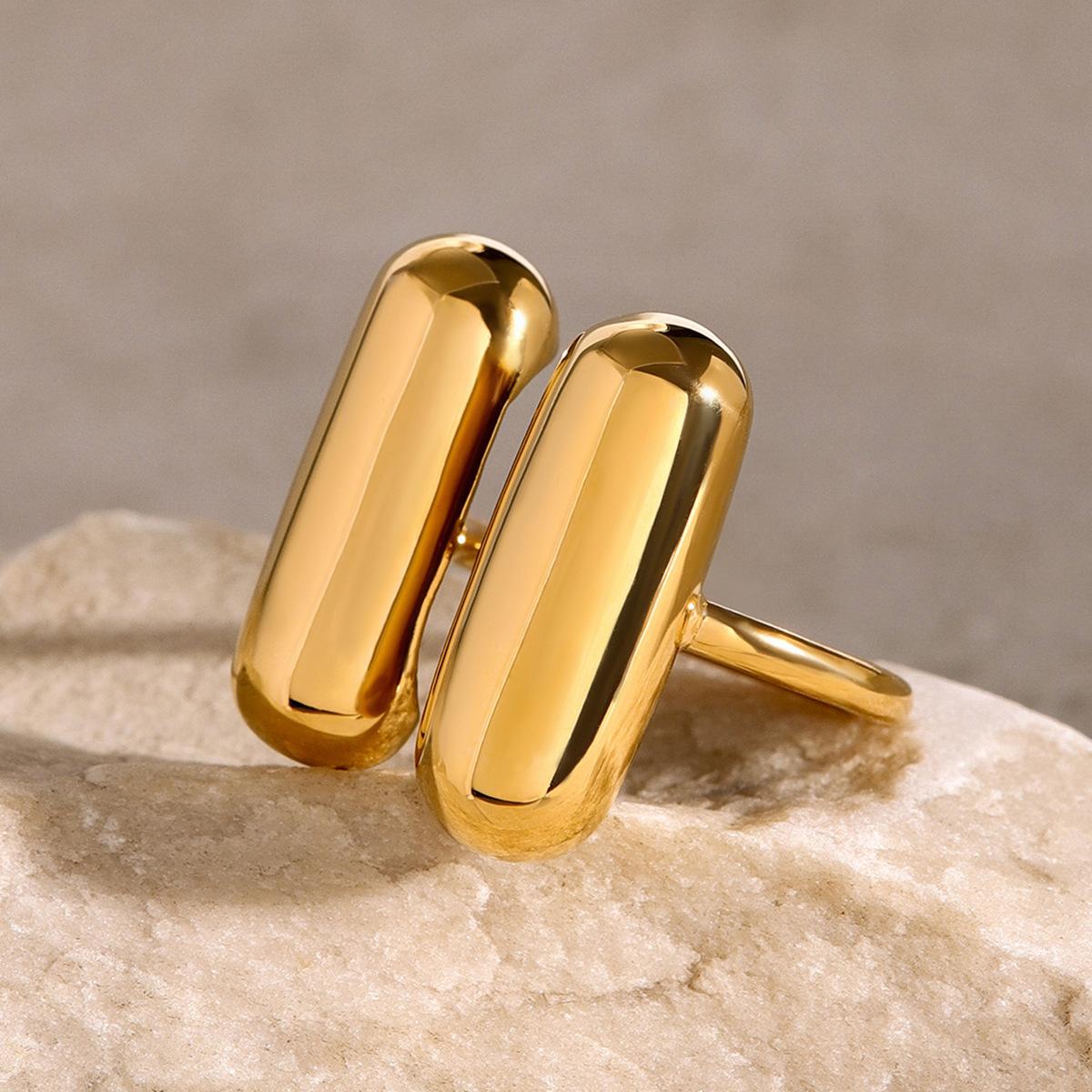 Anillo de acero inoxidable chapado en oro de 18k tendencia de moda europea y americana nicho único anillo abierto con forma de cápsula de doble hechizo