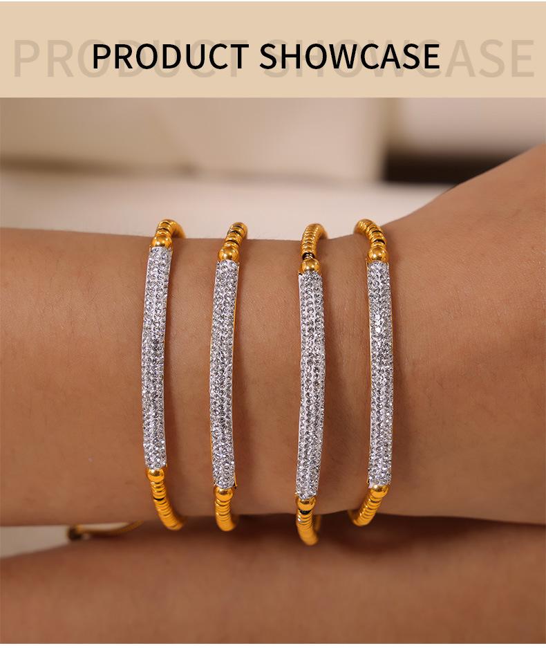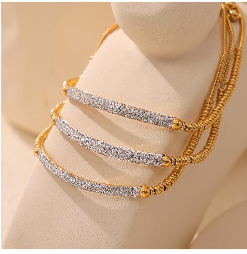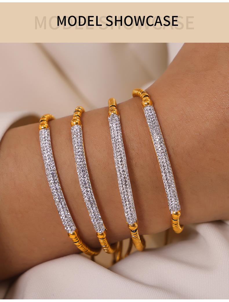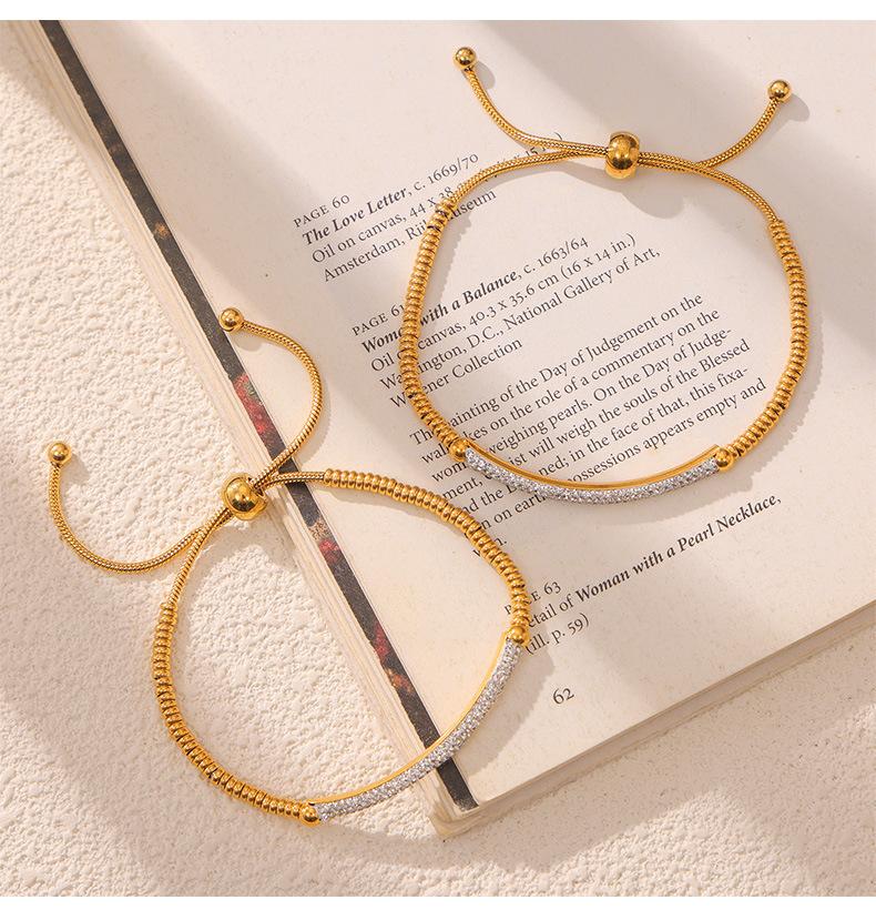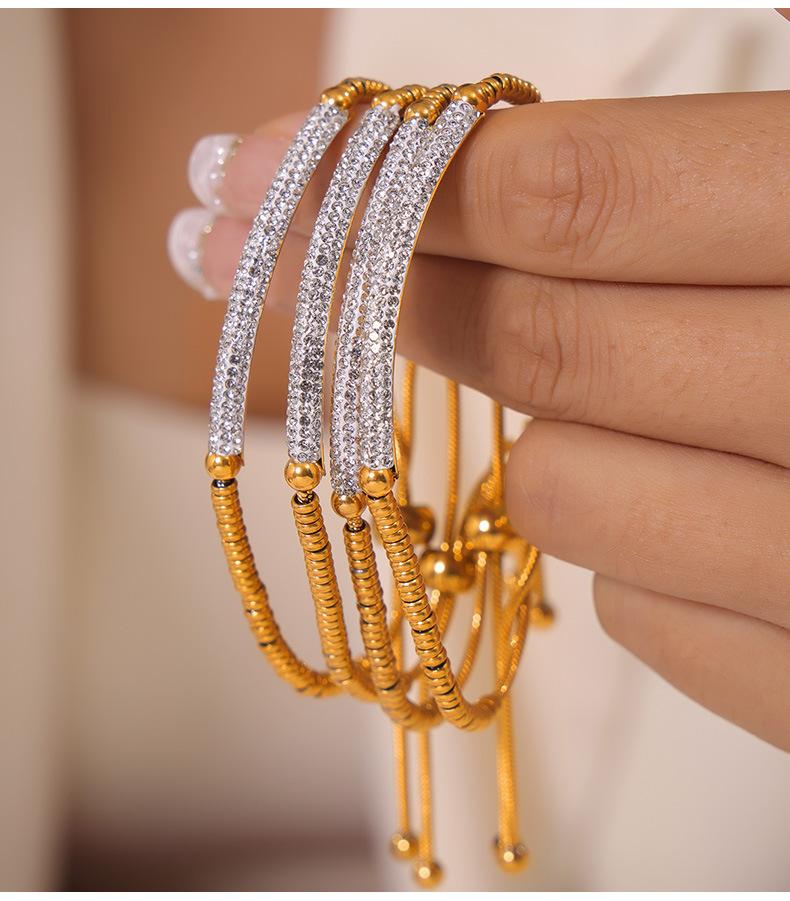 Pulsera de Moda Transfronteriza Europea y Americana Nicho Diamante Completo para Mujer Acero Titanio Chapado en Oro Accesorios Cuentas Ábaco Pulsera Ajustable Inmarcesible