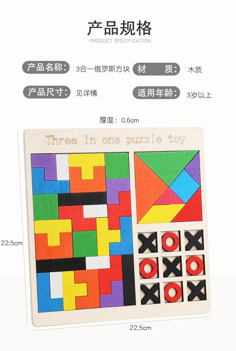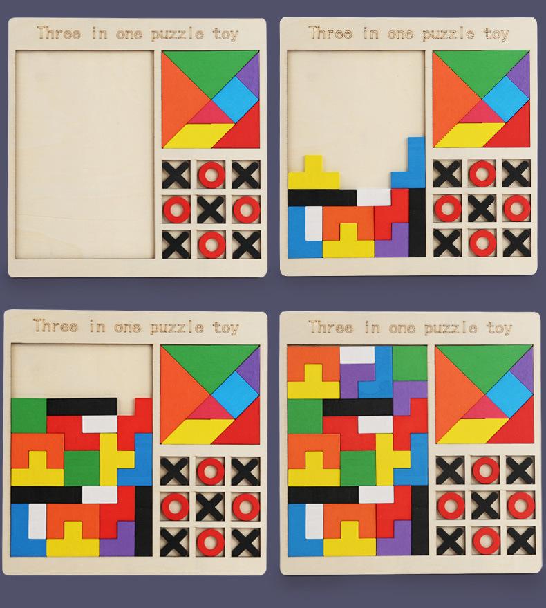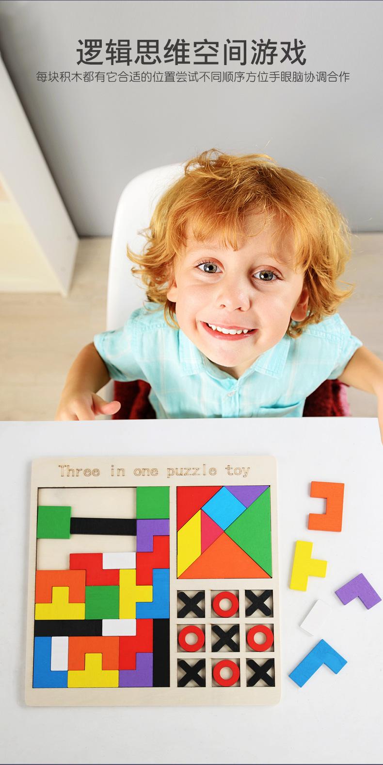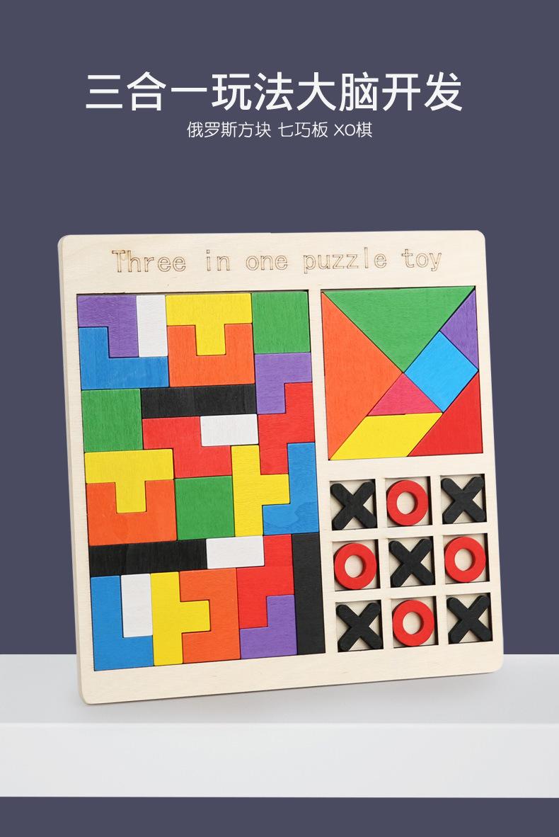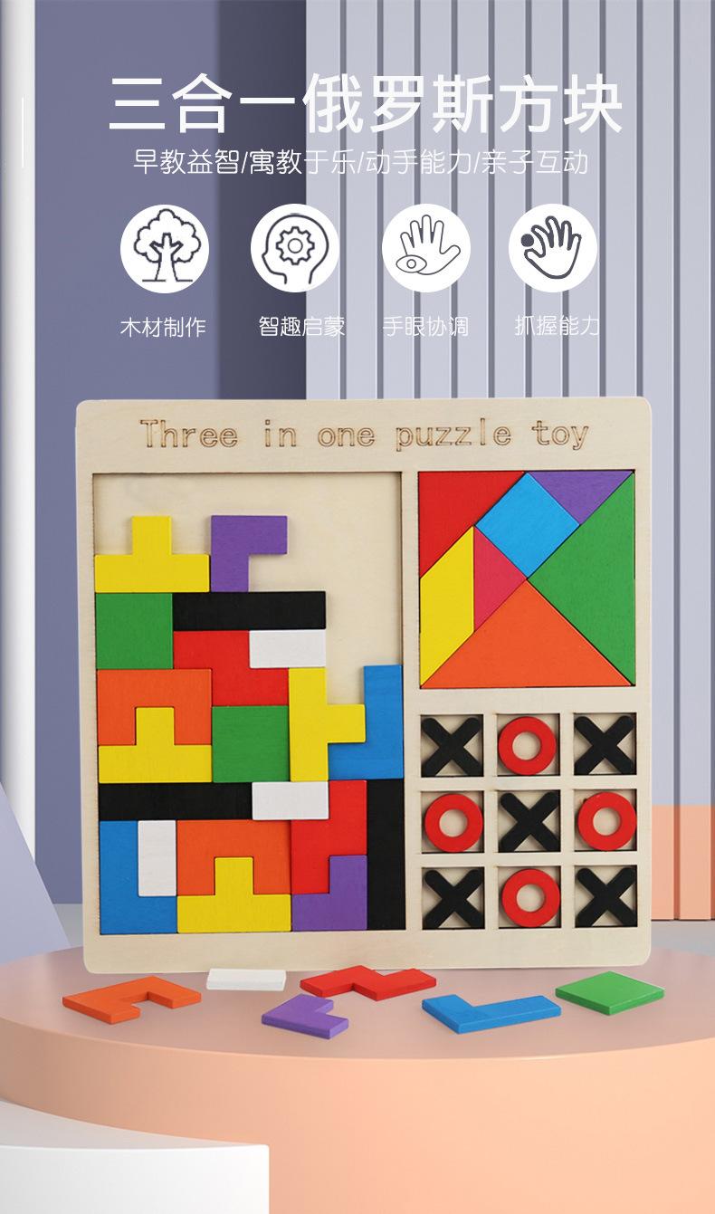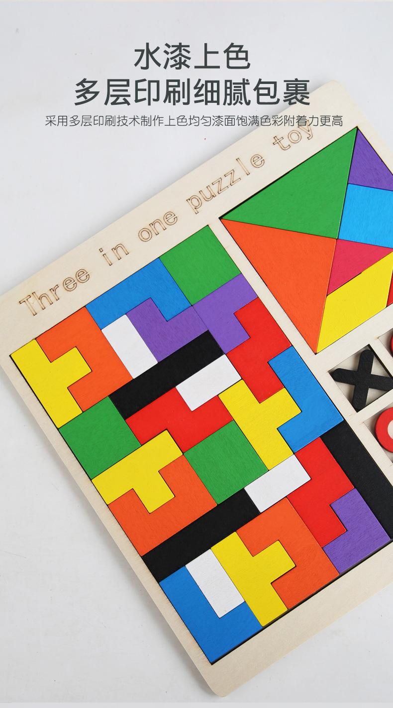 Rompecabezas de madera para niños, juego de rompecabezas Tetris, ajedrez, rompecabezas tres en uno, bloques de construcción, juguetes de educación temprana, bloques de construcción