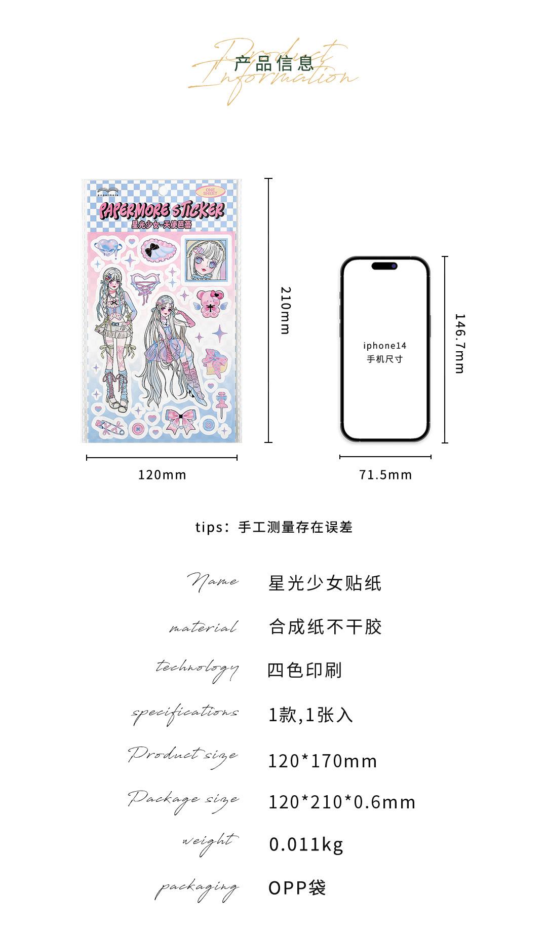 Pegatinas de papel sintético de la serie Starlight Girl de PaperMore, pegatinas lindas y dulces de estilo Ya, pegatinas de tarjeta Goo con cuenta de mano