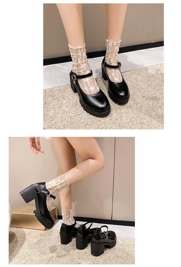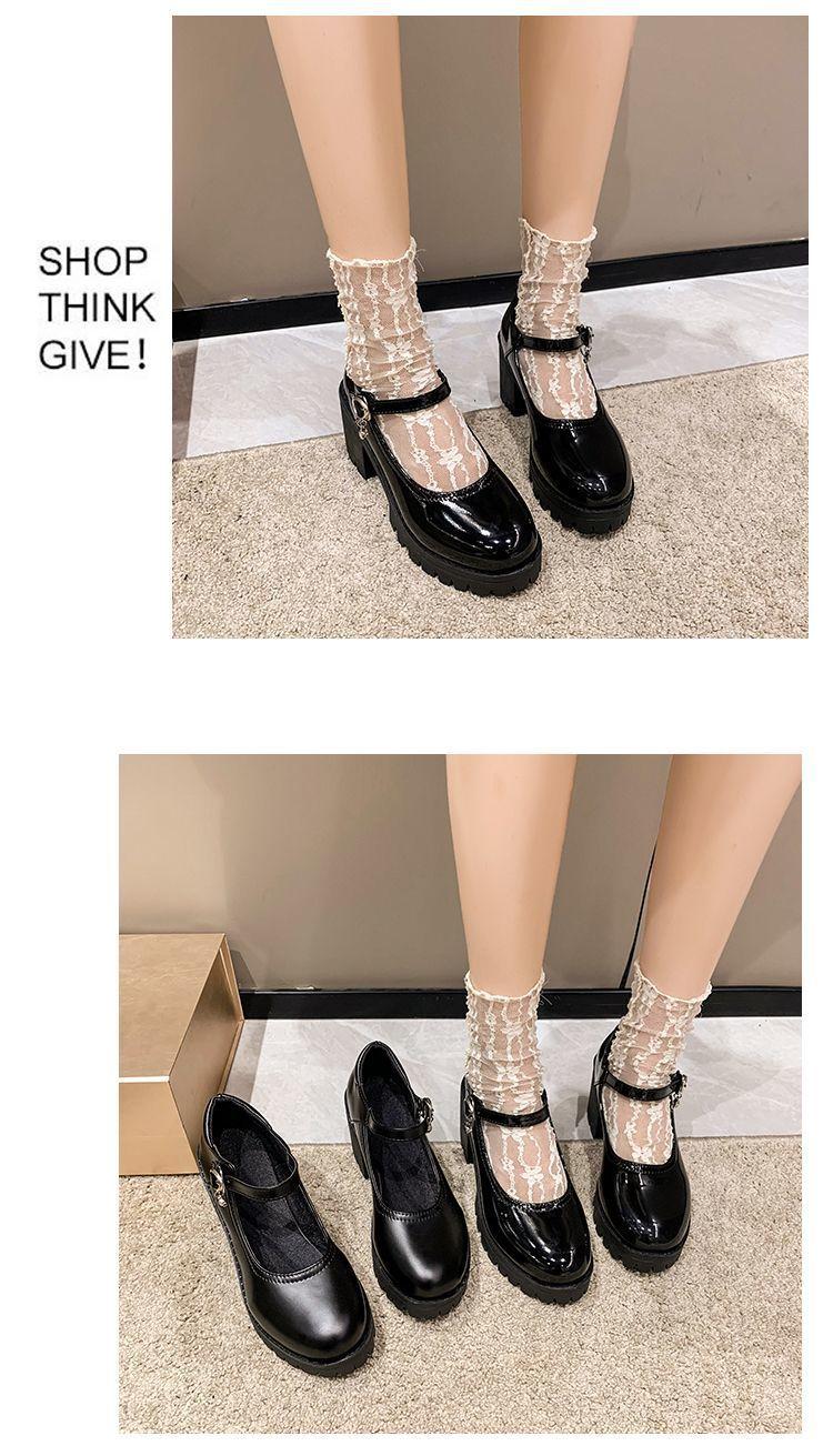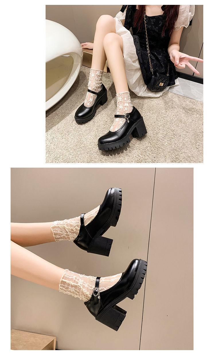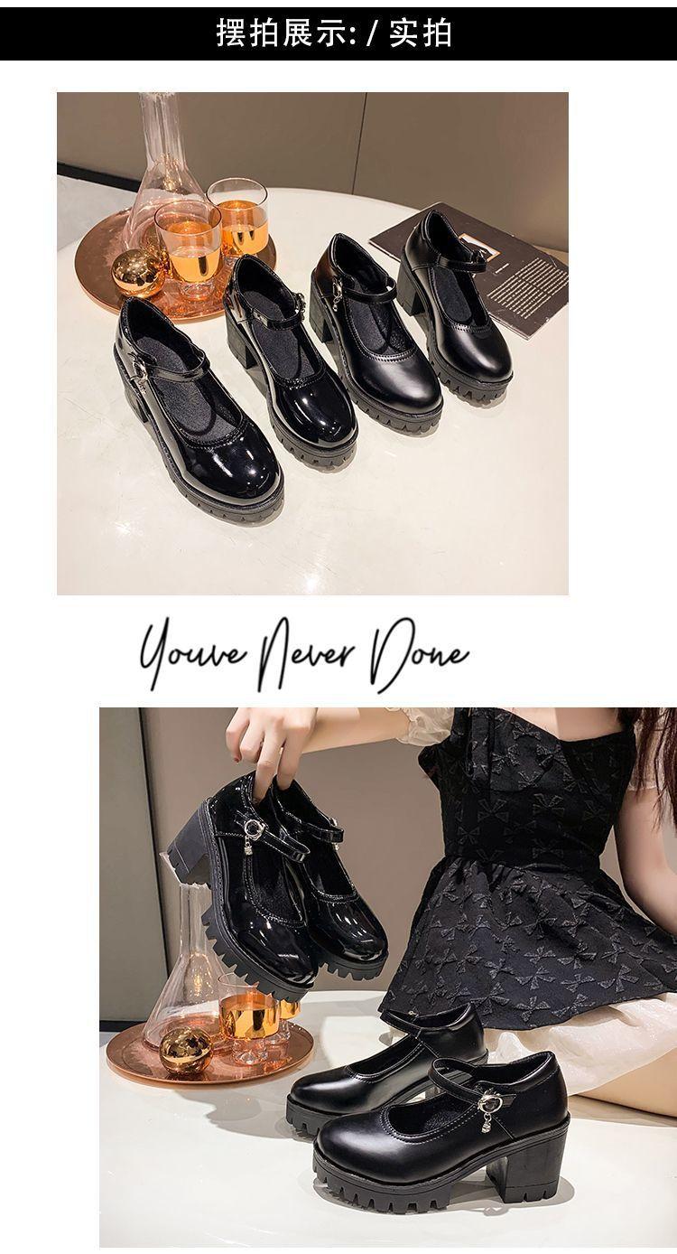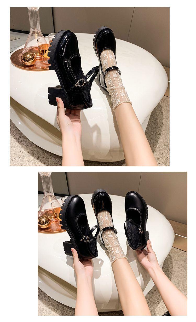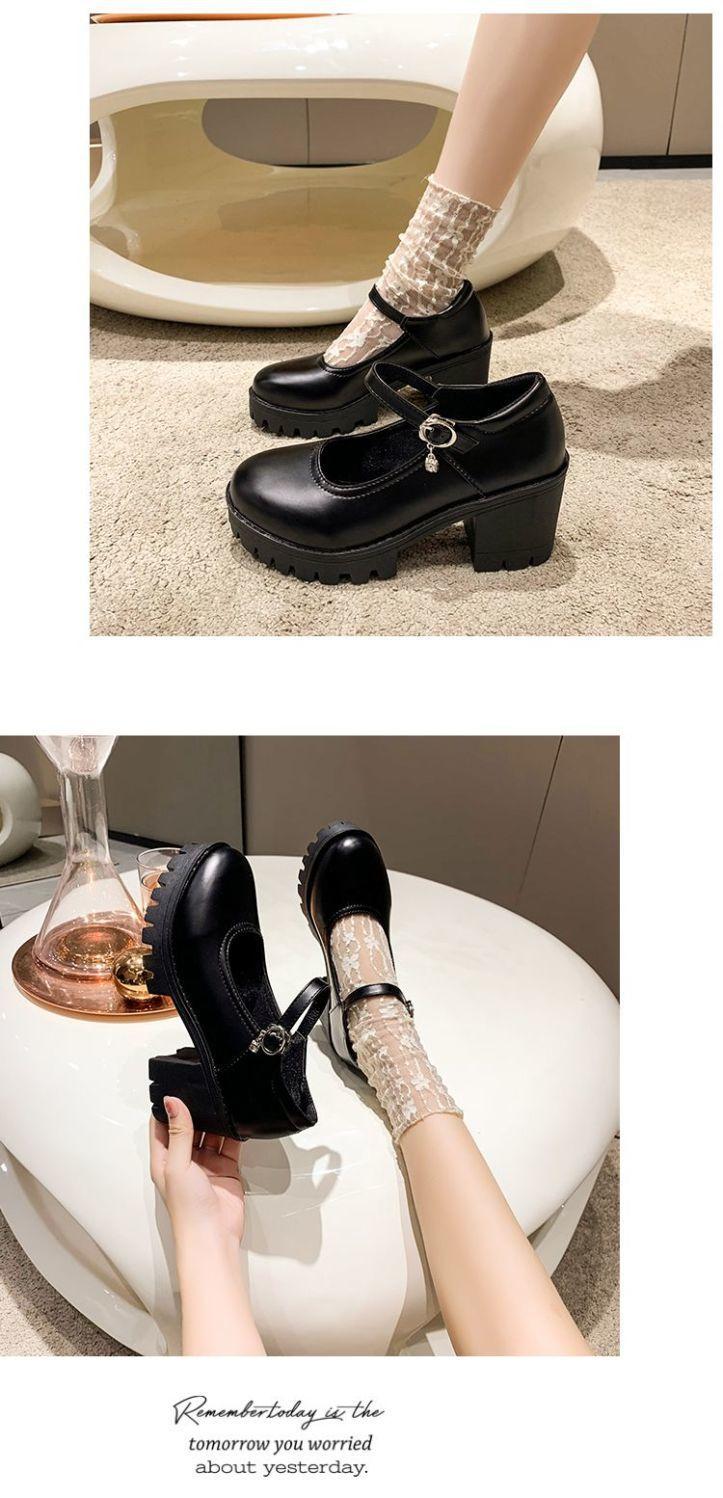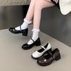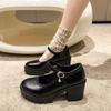 Zapatos Mary Jane franceses de suela gruesa, estilo británico, estilo retro, de tacón alto, estilo japonés JK muffin, de cuero, pequeños, 2024