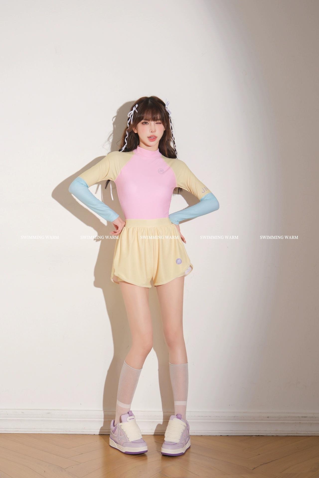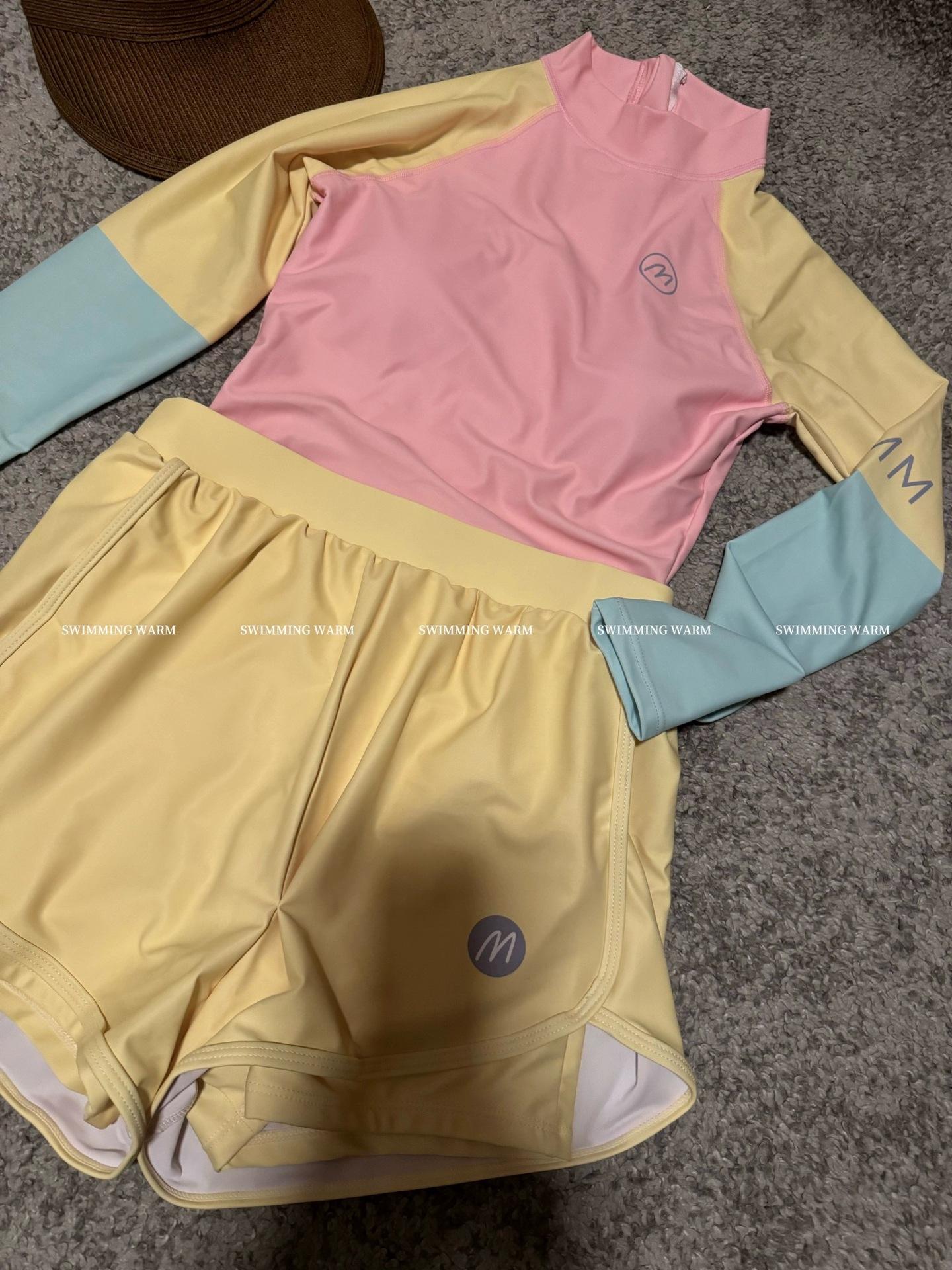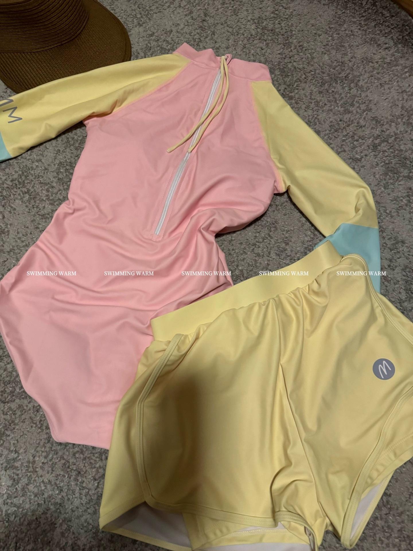 Traje de baño conservador de dos piezas para mujer 2024 Nuevo Protección solar Manga larga Shorts deportivos Ropa para aguas termales Cubre abdomen Adelgazante Traje de baño para niñas
