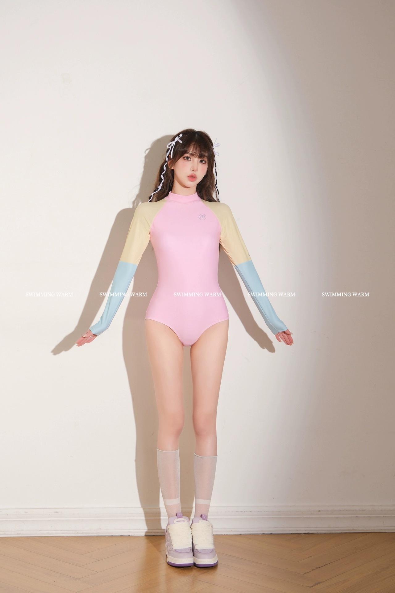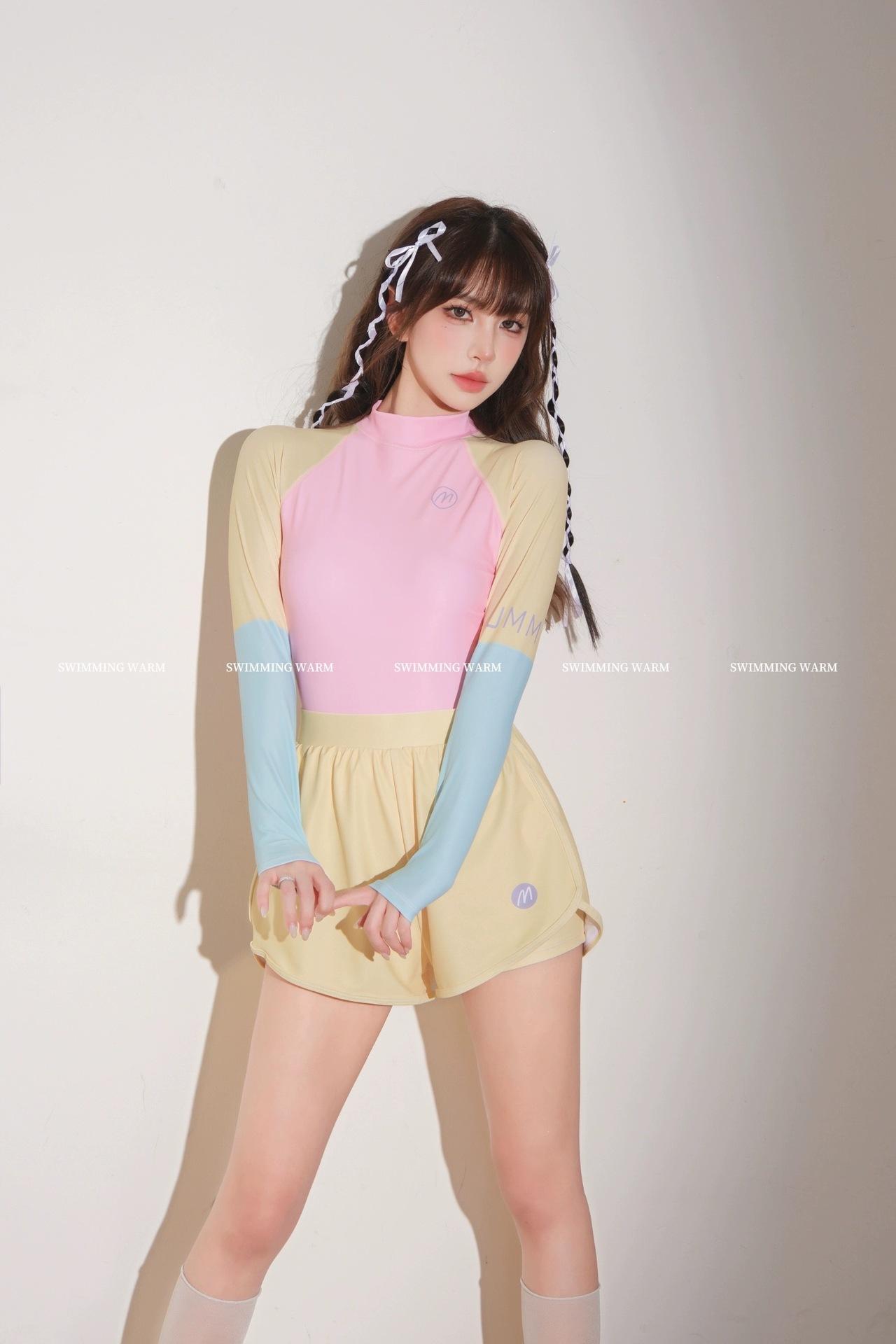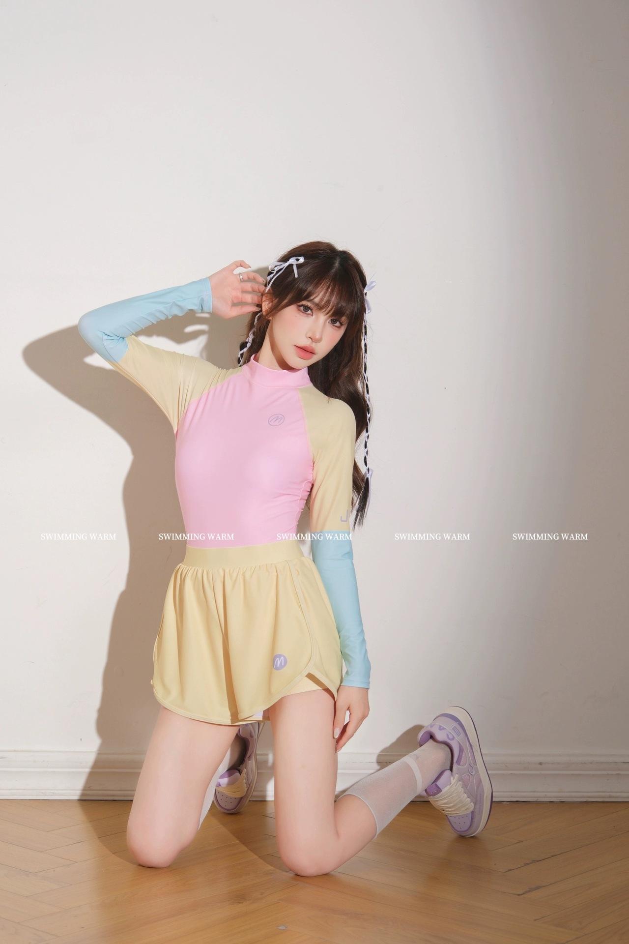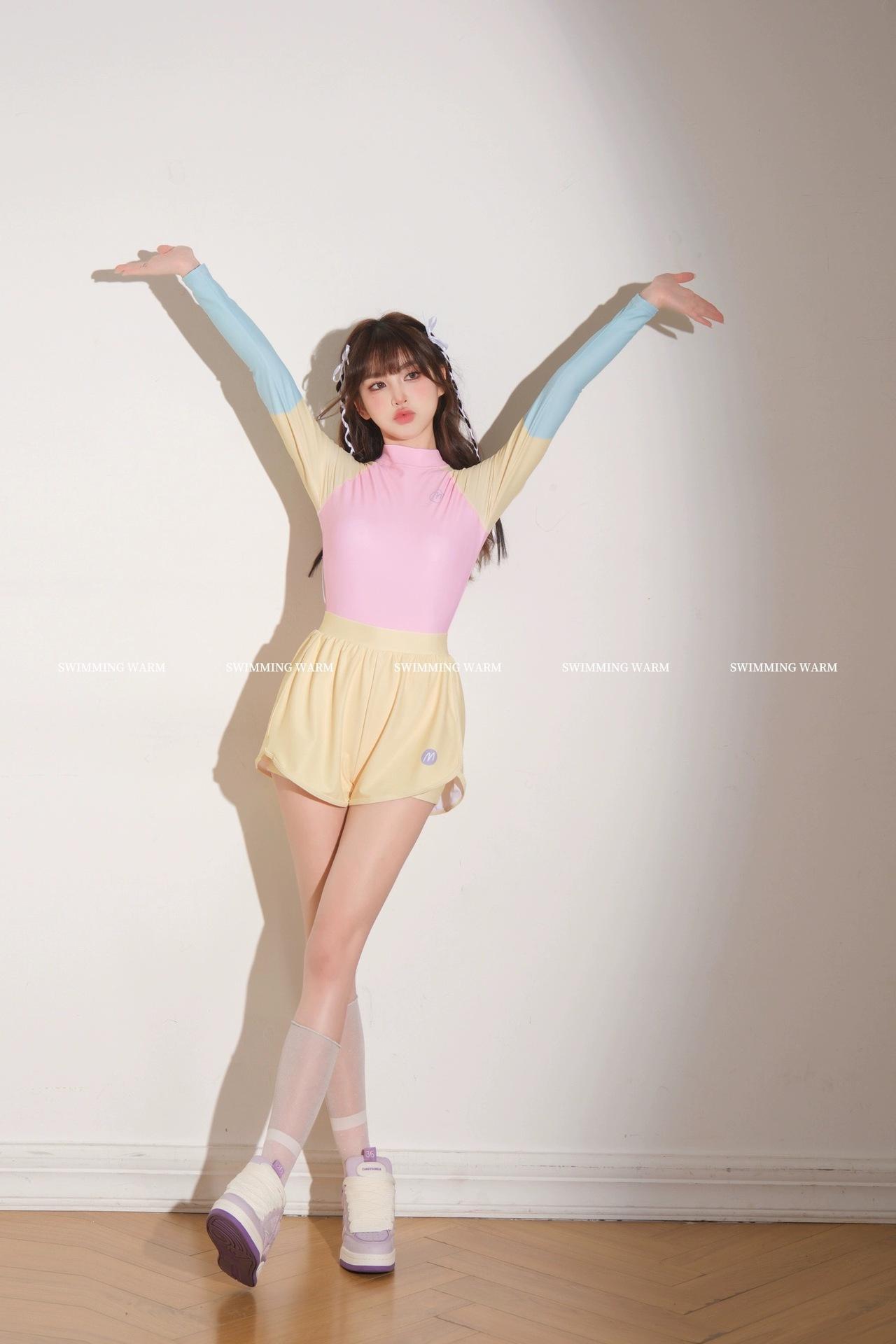 Traje de baño conservador de dos piezas para mujer 2024 Nuevo Protección solar Manga larga Shorts deportivos Ropa para aguas termales Cubre abdomen Adelgazante Traje de baño para niñas