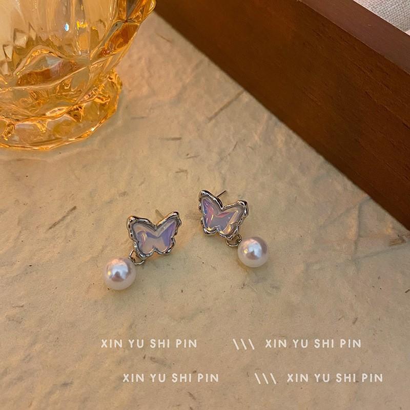 Pendientes de mariposa sencillos para mujer, nuevos pendientes pequeños y distintivos de verano, diseño de nicho, pendientes de alta gama para uso diario.