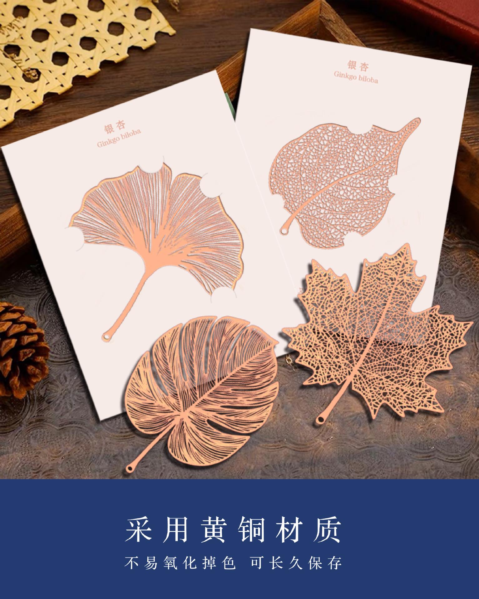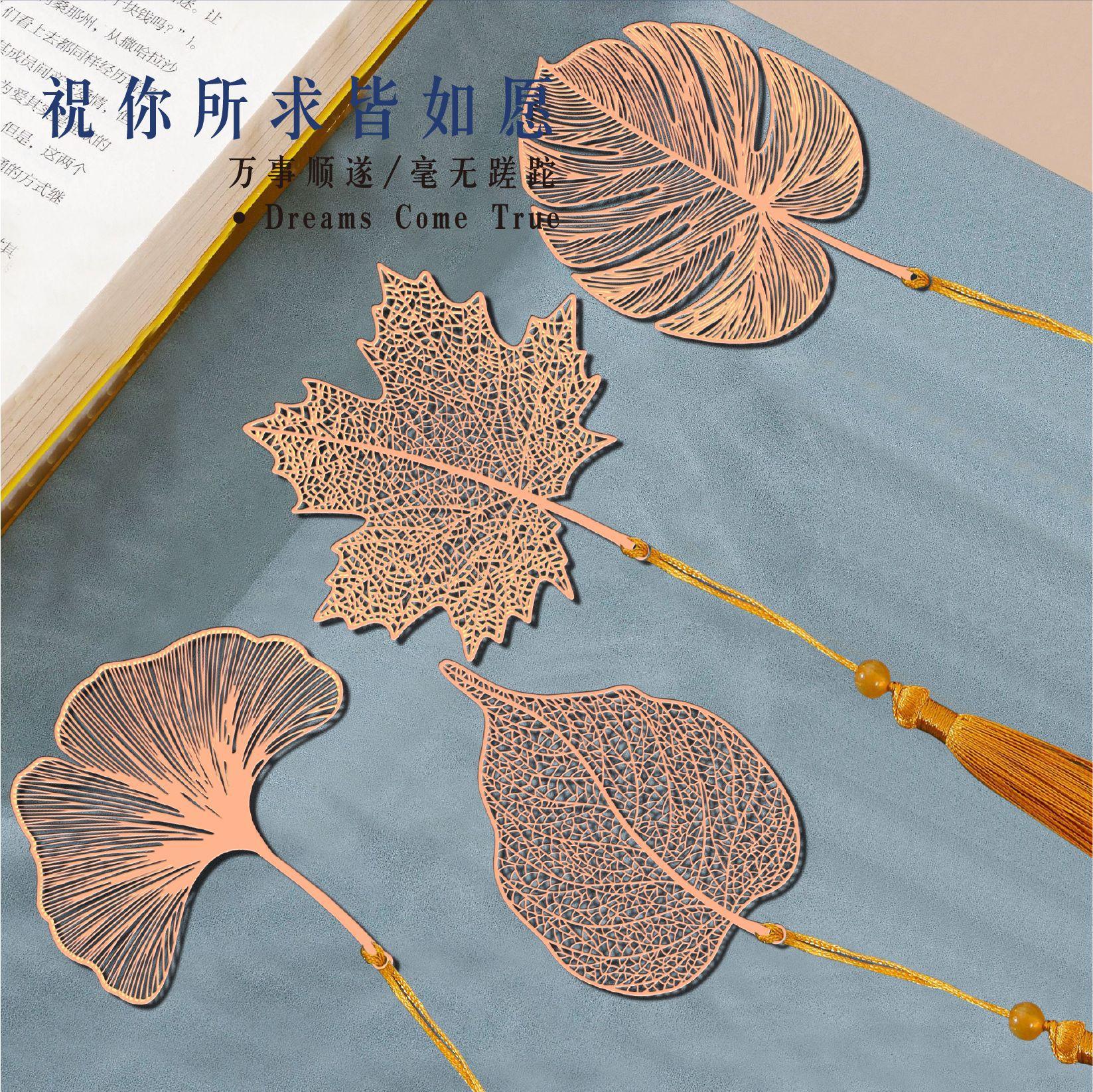 Marcador de metal con hojas de las cuatro estaciones, estilo chino, regalo creativo, caja de regalo creativa, regalo para graduación de estudiantes, día del maestro.