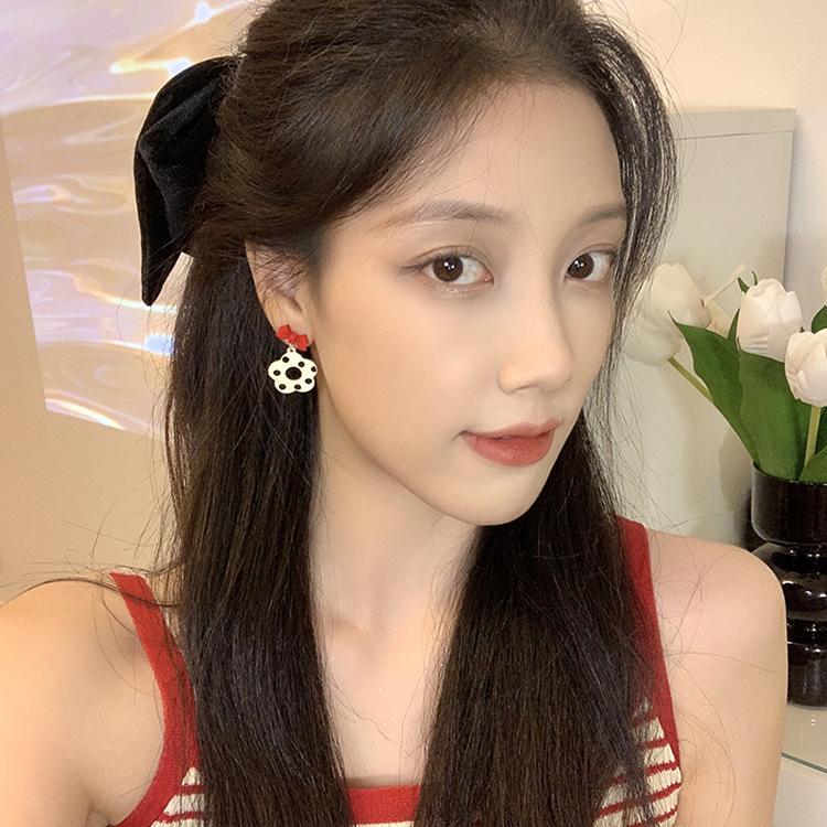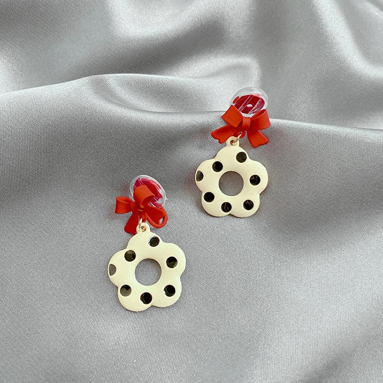 [469] polka dot Flower Ear Pin, [469] polka dot flower mosquito coil ear clip