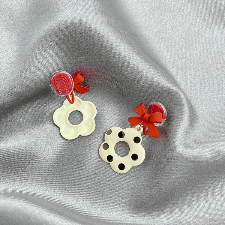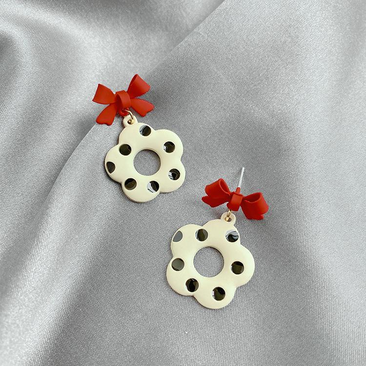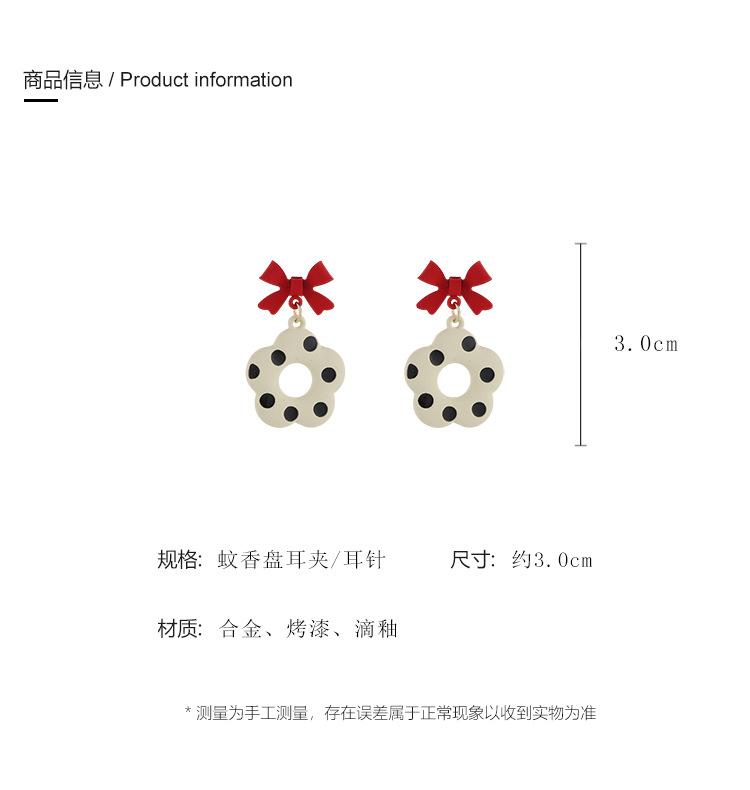 Pendientes de lazo de diseño único, retro, lindos pendientes de flores con lunares, espiral antimosquitos, sin clip para las orejas.
