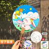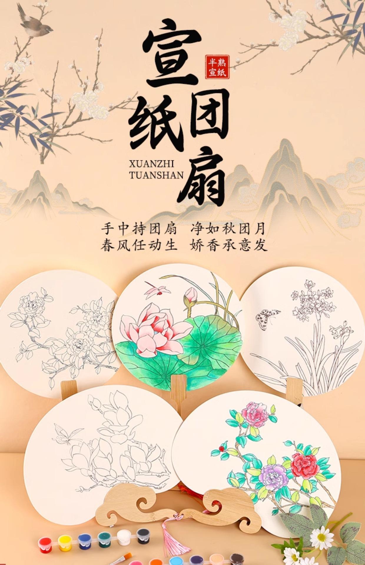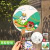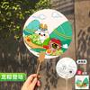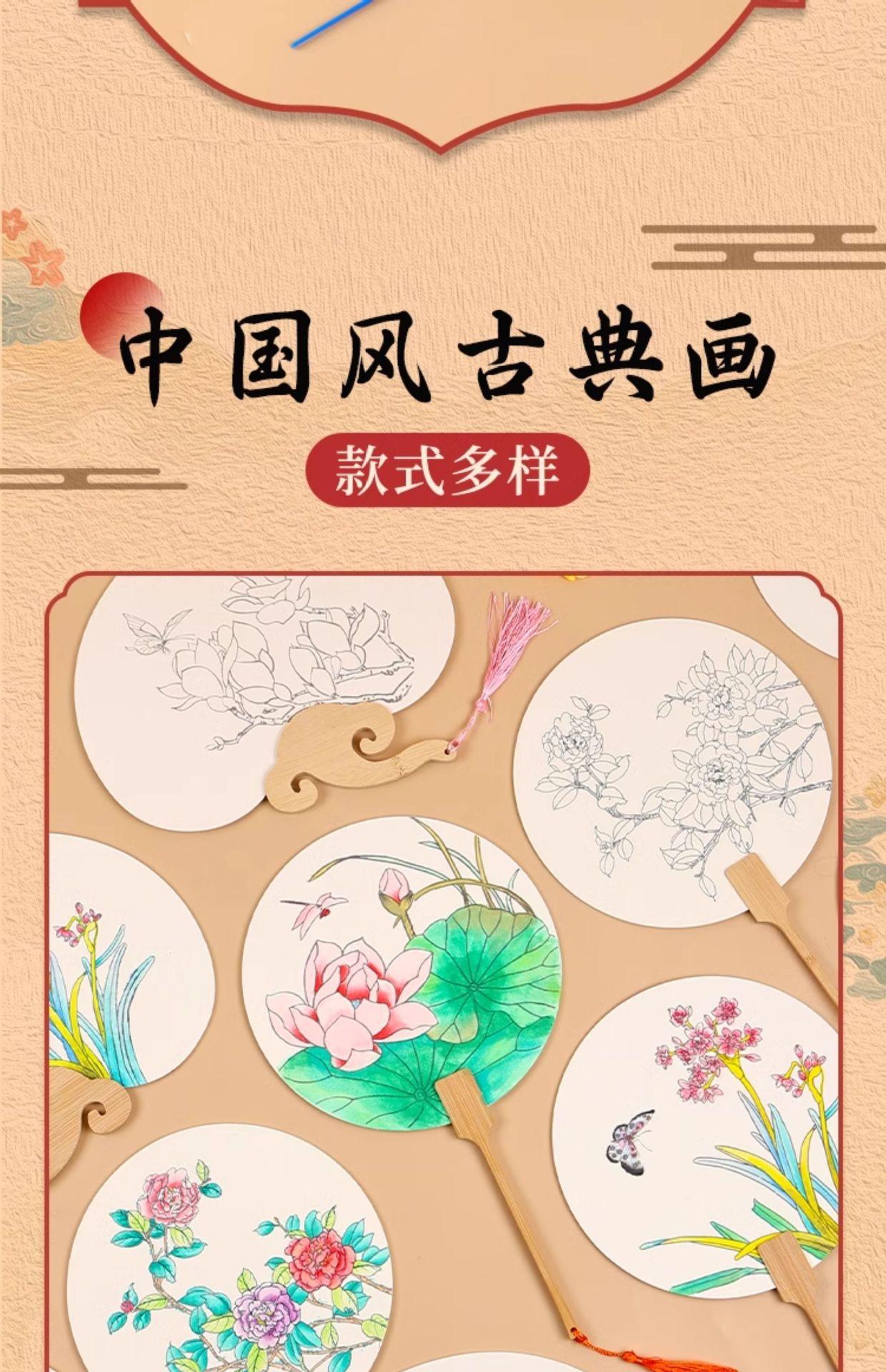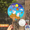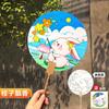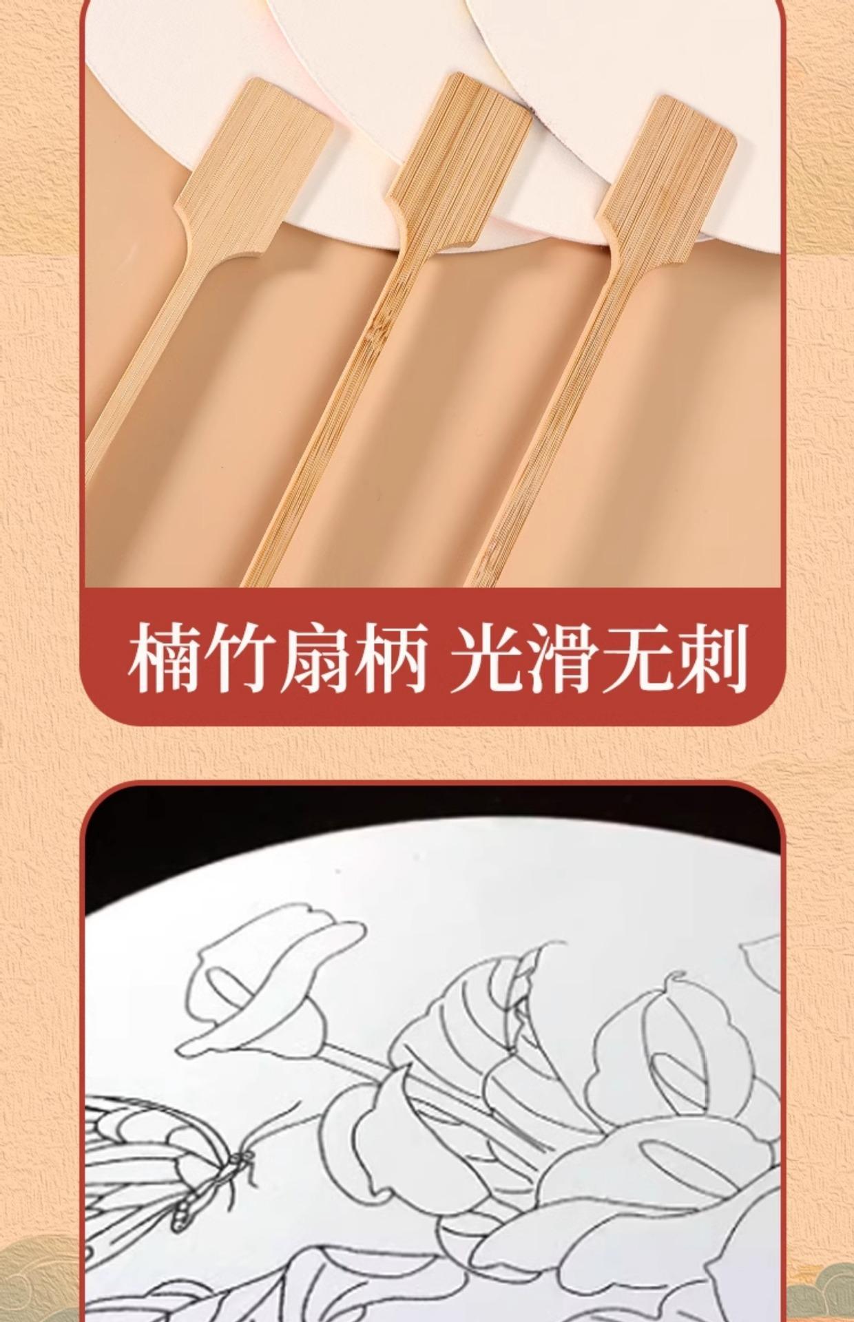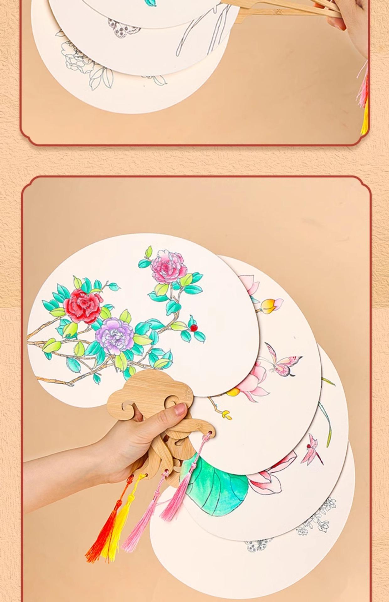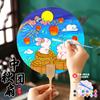 Festival del Medio Otoño hecho a mano diy graffiti abanico bolsa de materiales abanico de papel de arroz en blanco pintado a mano estilo antiguo línea para colorear copia