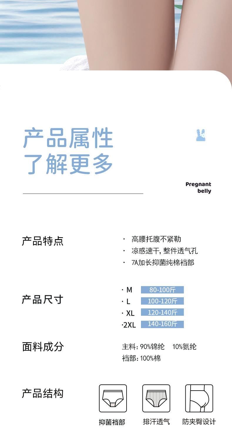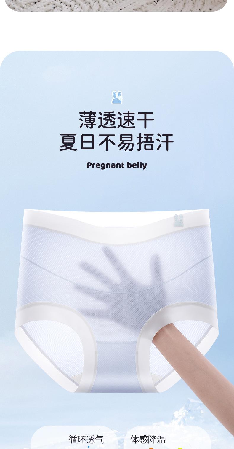 Ropa Interior de Maternidad, Entrepierna de Algodón Puro, Entrepierna Antibacteriana, Cintura Alta, Soporte Abdominal, Seda de Hielo Fina para la Mitad y Final del Embarazo, Refrescante