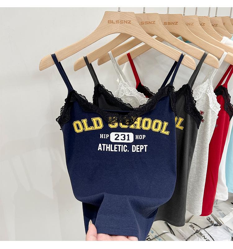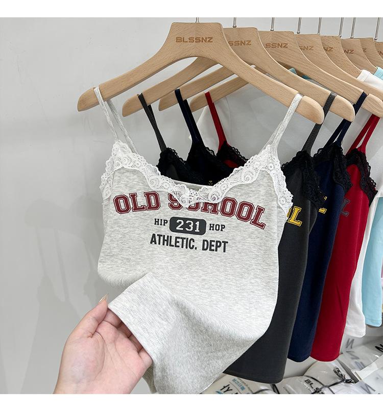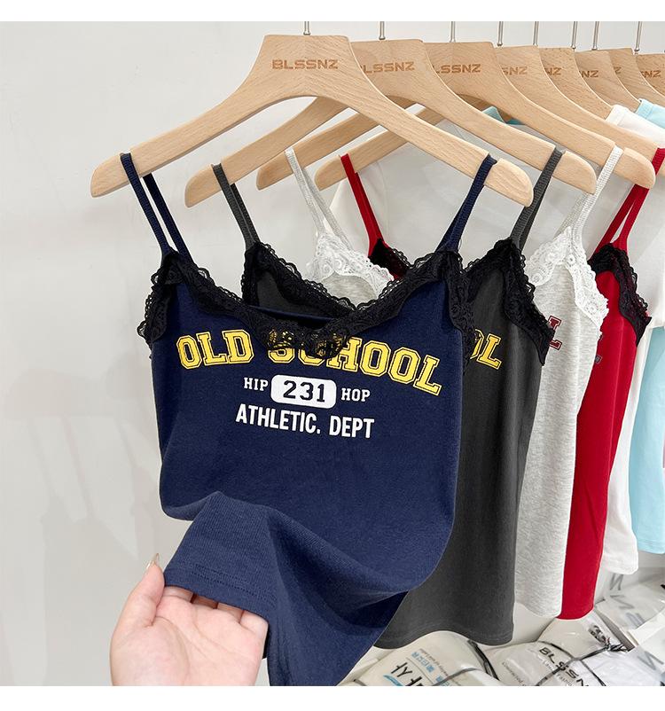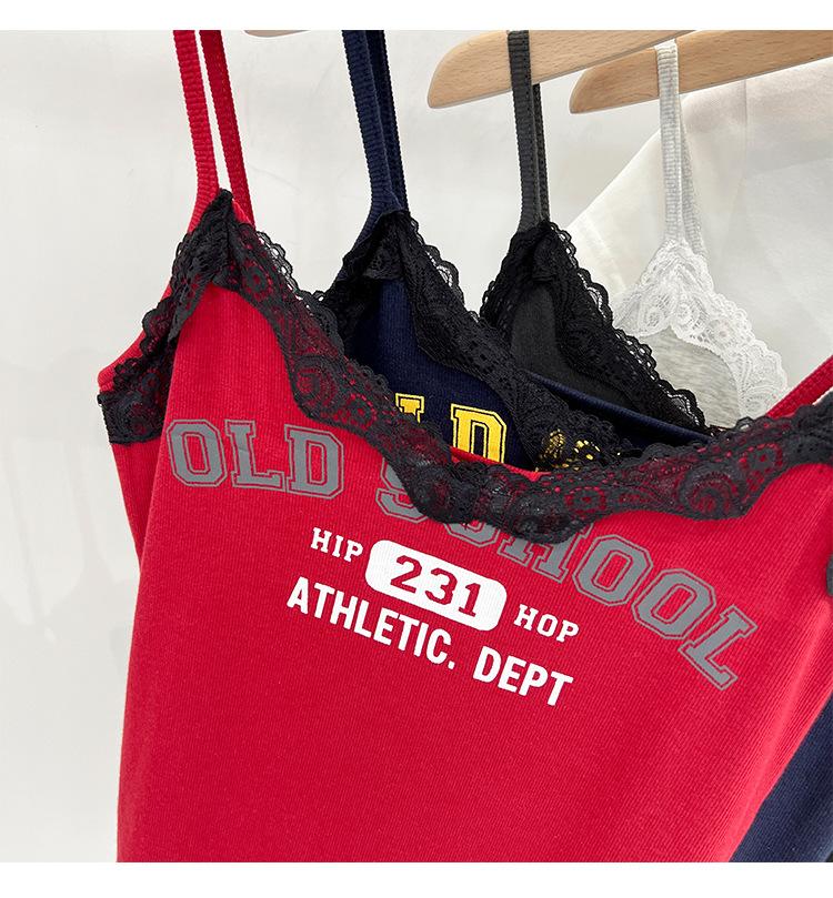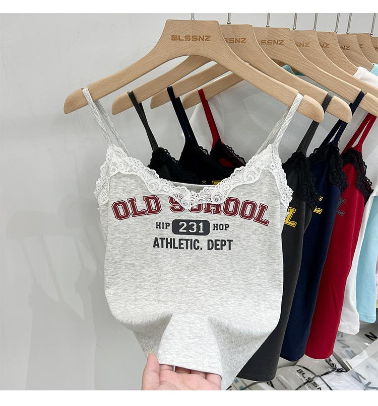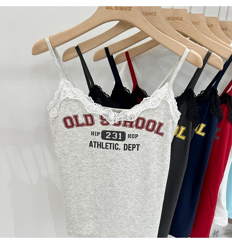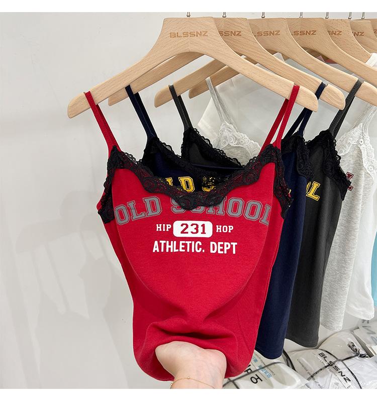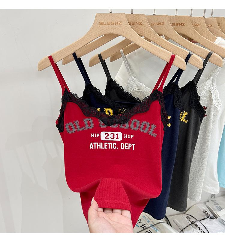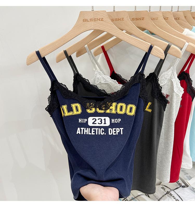 Camisola estilo americano para mujer, estilo sexy, sin mangas, de verano, con base interior de encaje y diseño de nicho.