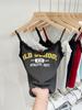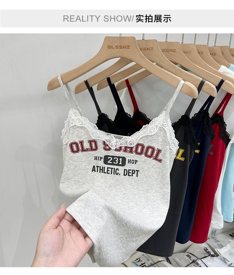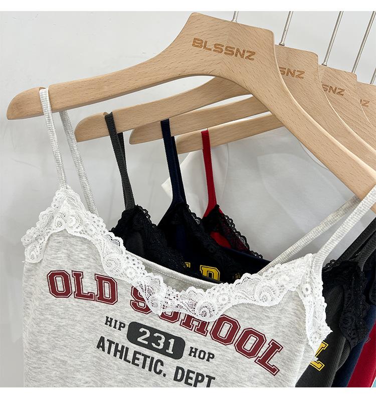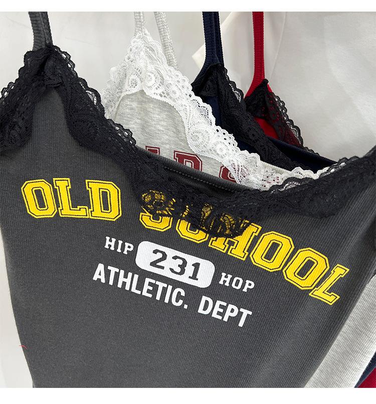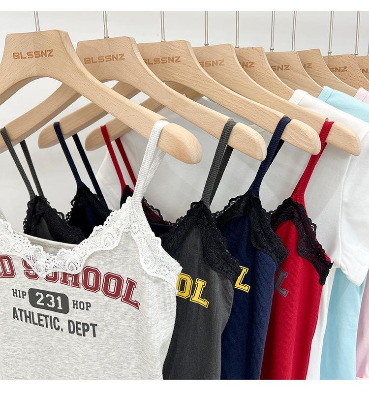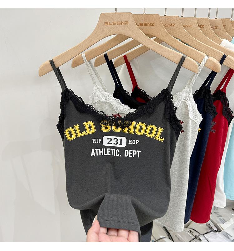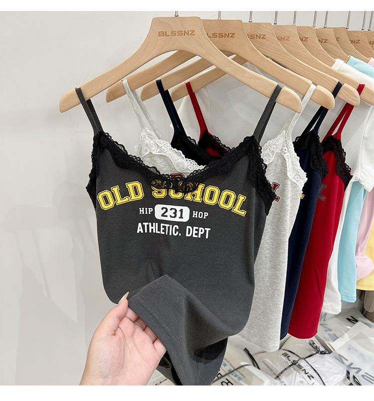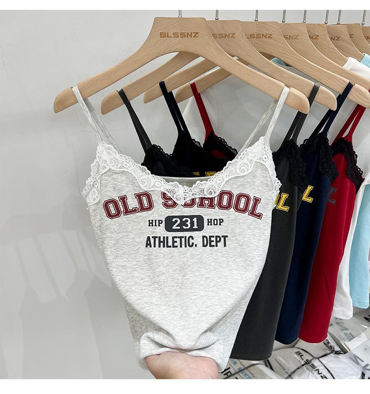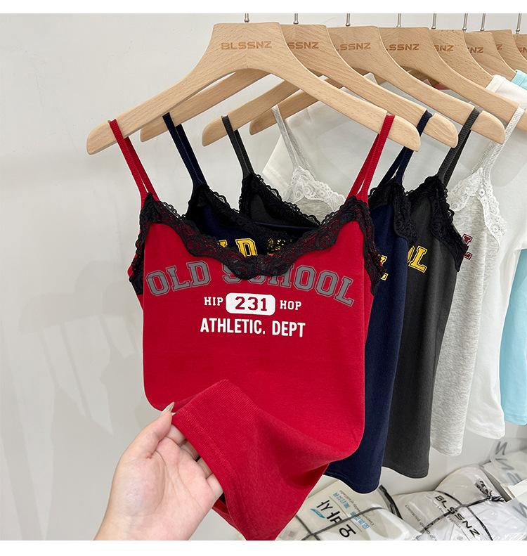 Camisola estilo americano para mujer, estilo sexy, sin mangas, de verano, con base interior de encaje y diseño de nicho.