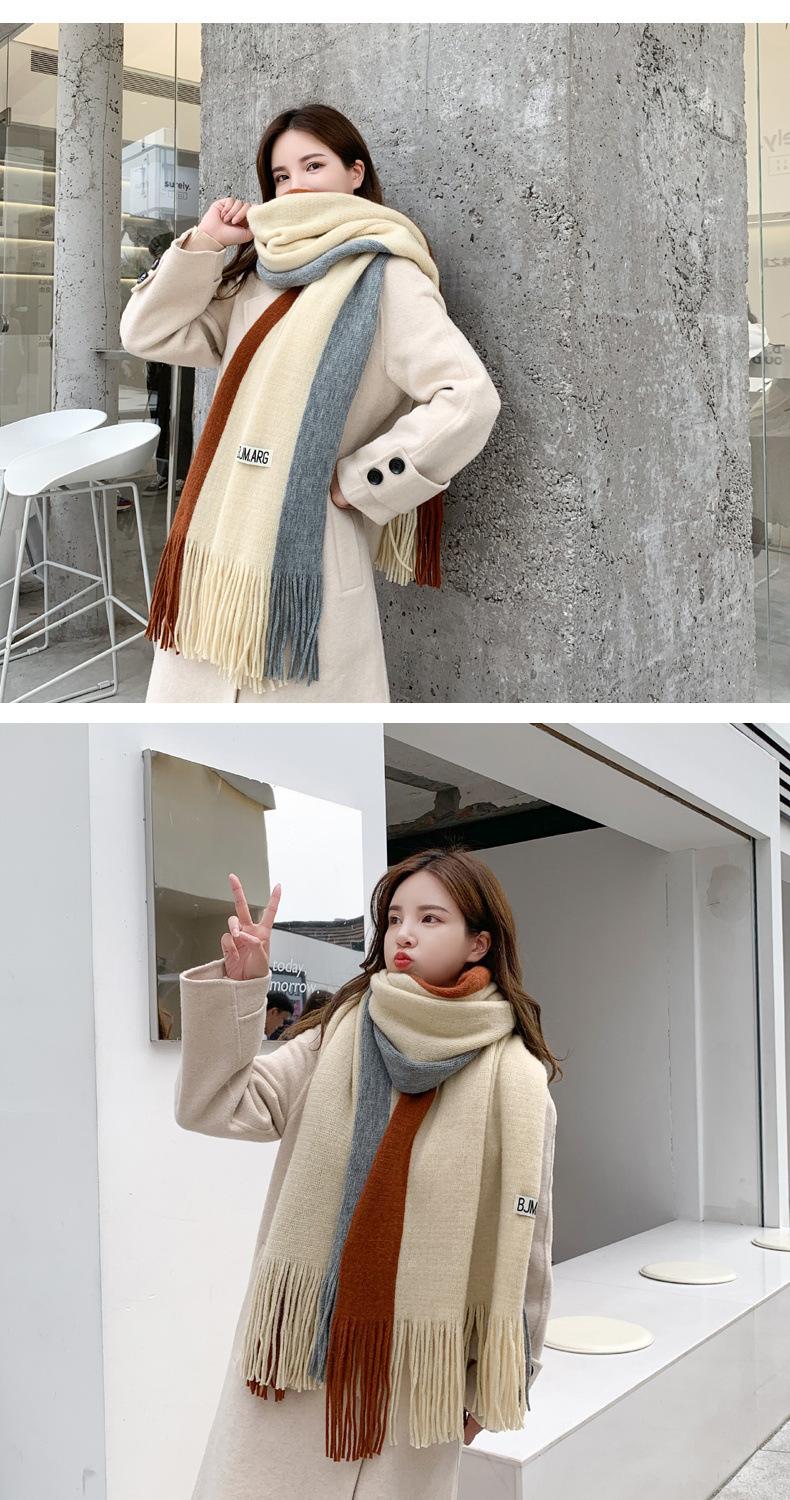 Bufanda de lana tejida a juego, estilo coreano, larga y gruesa, de invierno para mujer, bufanda suave para estudiantes, otoño e invierno para hombre y mujer
