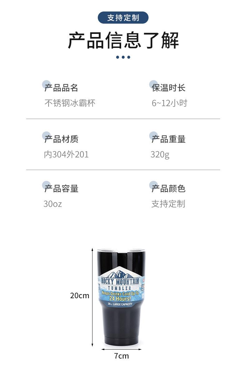Taza de acero inoxidable para coche transfronteriza, 30 oz, para hielo frío, gran capacidad, para cerveza, termo para coche, venta al por mayor