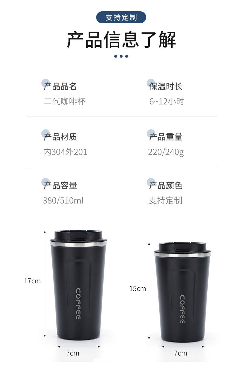 Taza de café clásica de segunda generación taza de acero inoxidable 304 oficina portátil taza de té termo de vacío para negocios