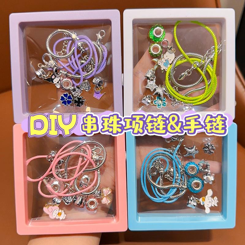 Pulsera de cuentas para niñas, hecha a mano, con material de bricolaje, juguete para niños, pulsera de cuentas de cristal esmaltado para niñas