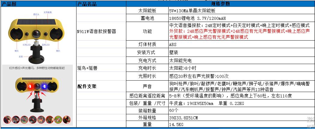 3. N911W versión de comercio exterior amarilla (luz roja) 13 tipos de reproducción en bucle de voz. Exportación al extranjero, modelo recomendado para comercio electrónico transfronterizo