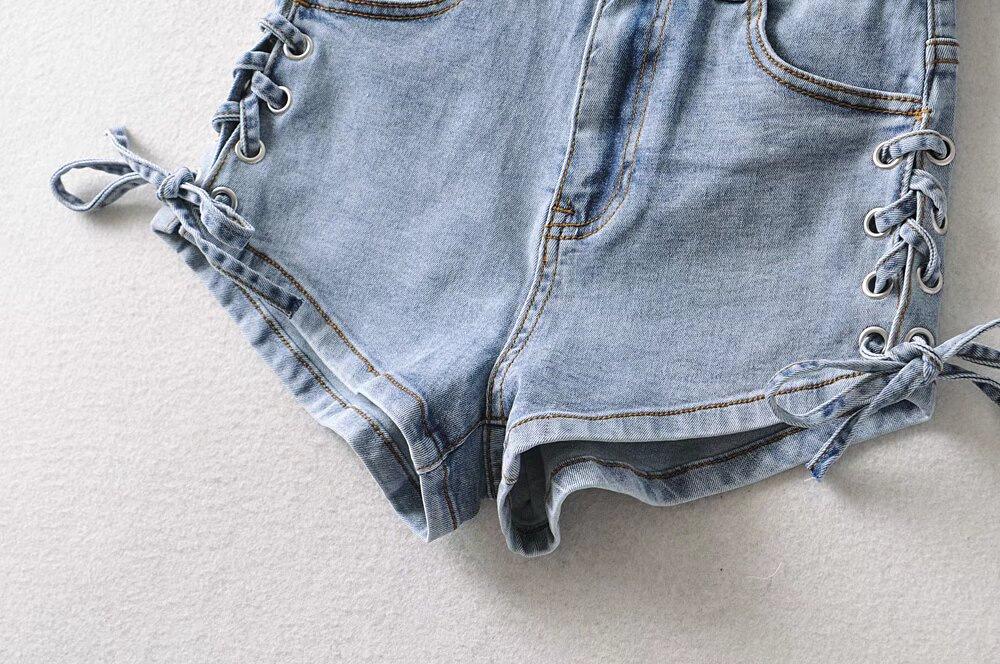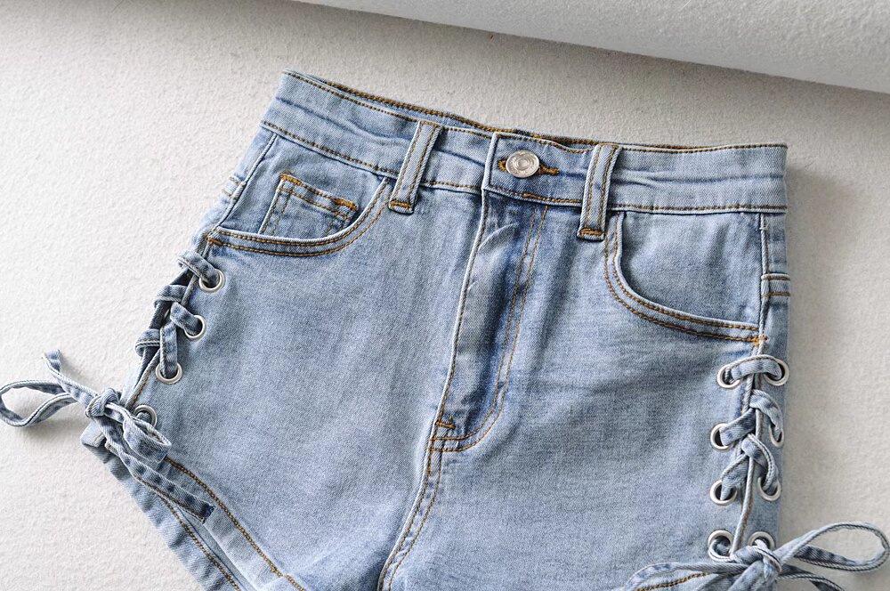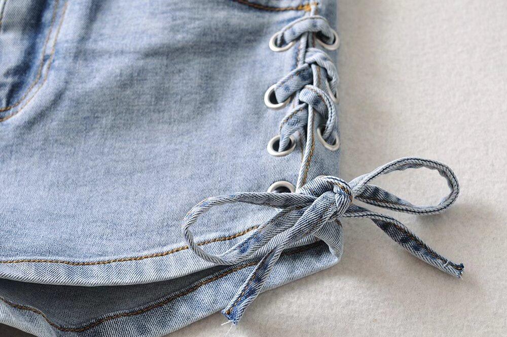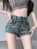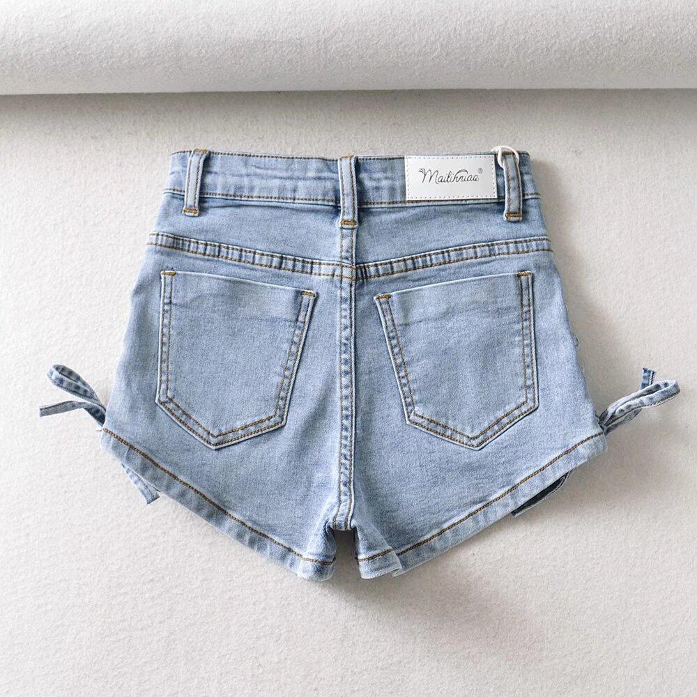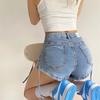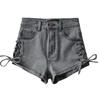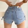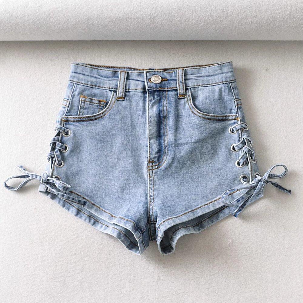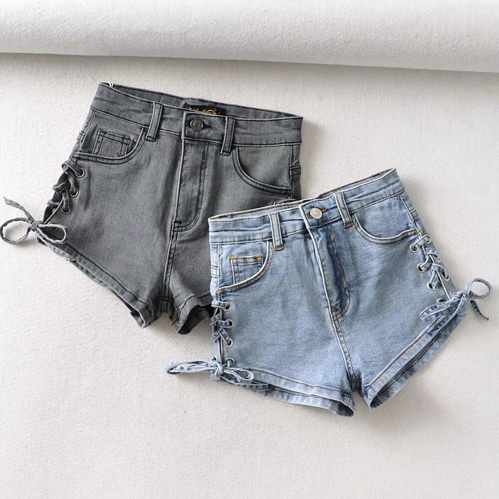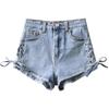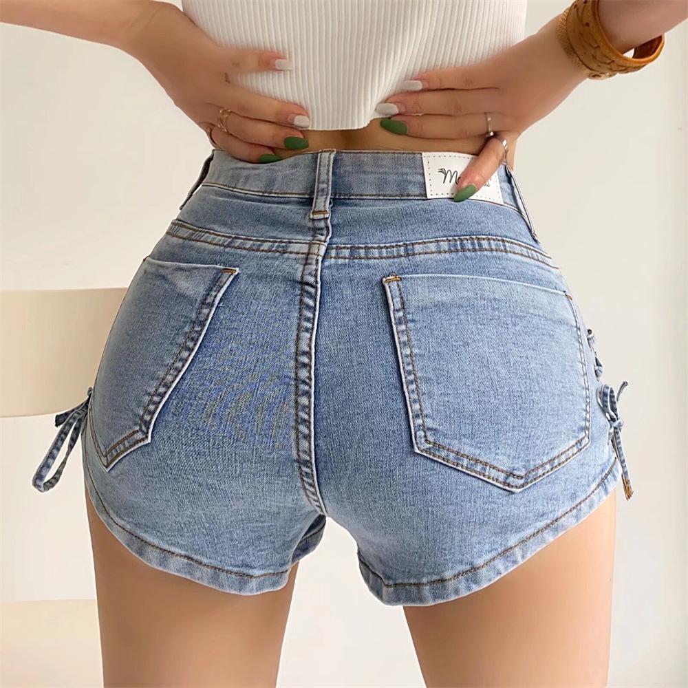 YPFF Ropa de Mujer Trendy Estilo Europeo y Americano Shorts de Mezclilla con Tiras Laterales Verano Nuevo Cintura Alta Adelgazantes Elásticos Cadera Hot Pants