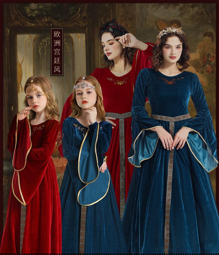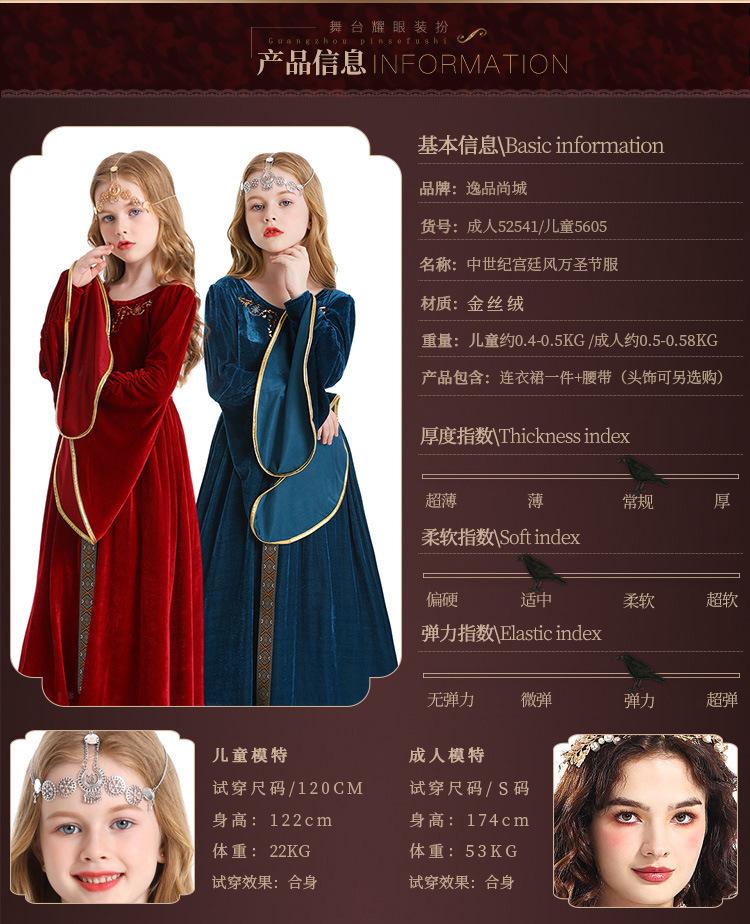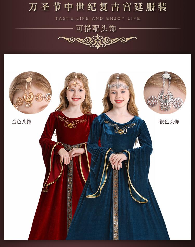 Disfraces de Halloween Ropa de Actuación para Niños Cosplay Mangas Trompeta Danza de Palacio Retro Ropa Medieval Europea