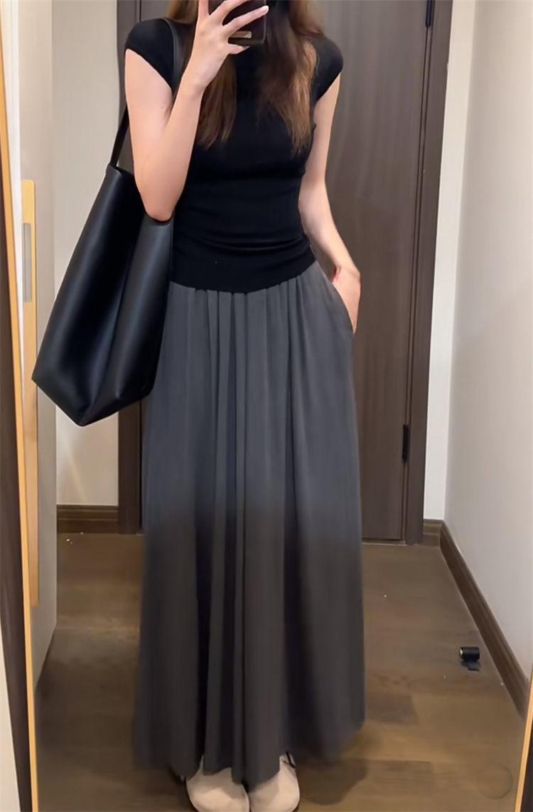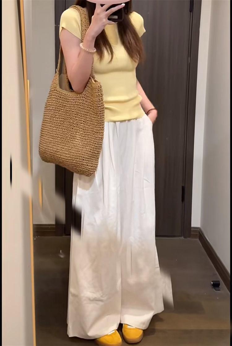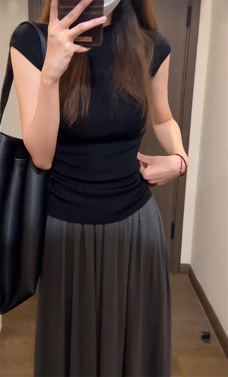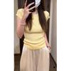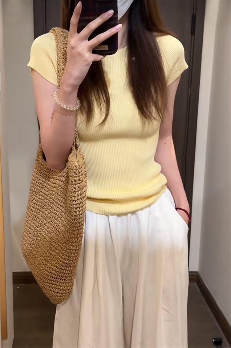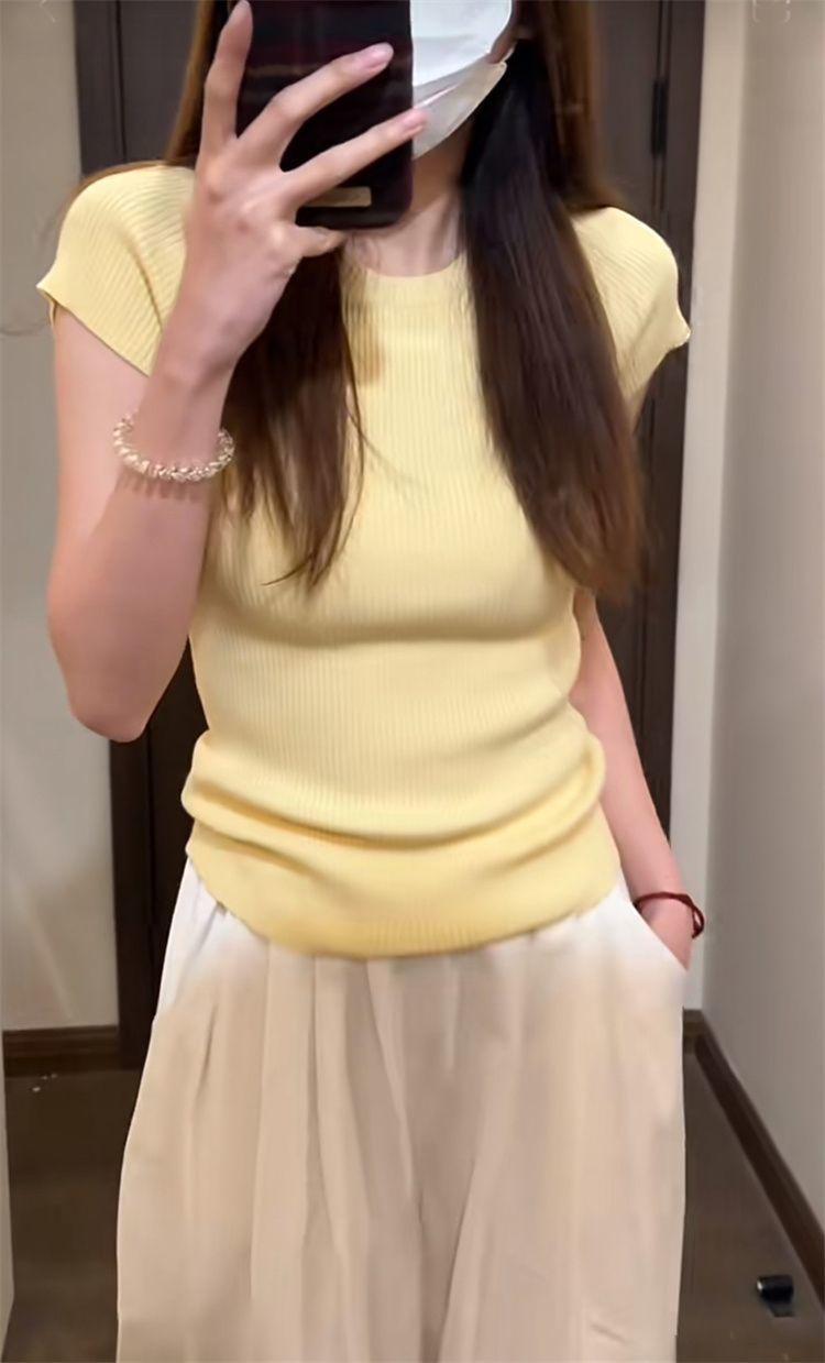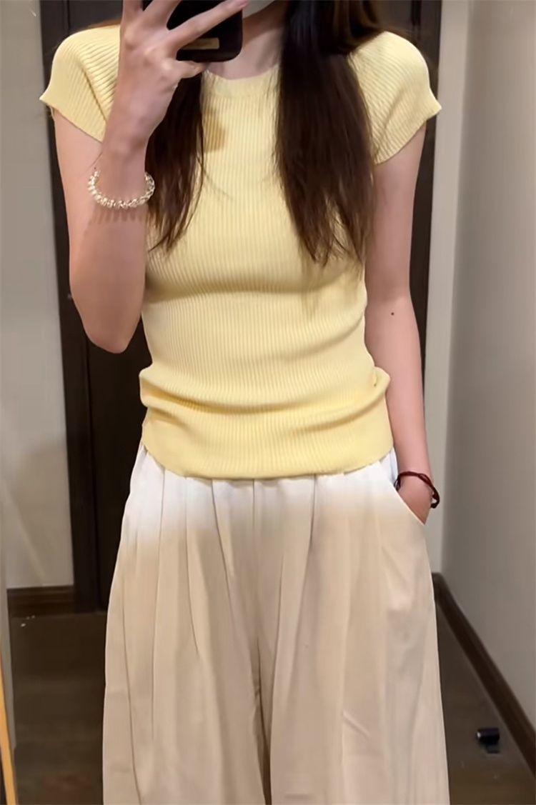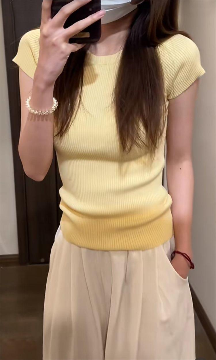 Suéter básico simple de manga corta de color sólido para mujer, camiseta adelgazante de corte entallado de verano 2024, camiseta básica que combina con todo.