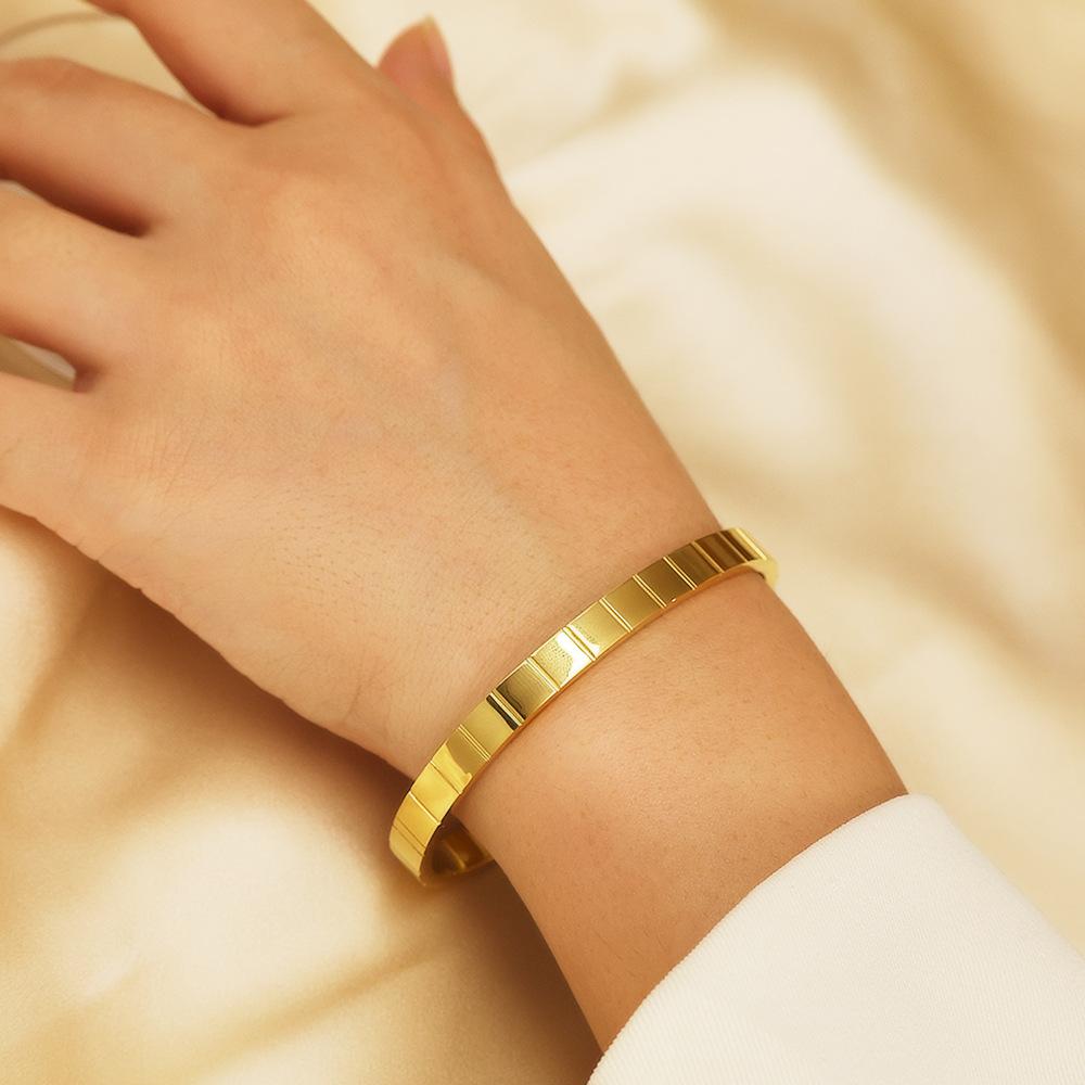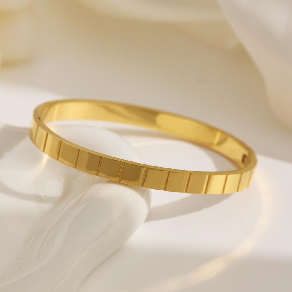 European and American retro high-grade sense gold square stripe plain ring bracelet women wholesale custom