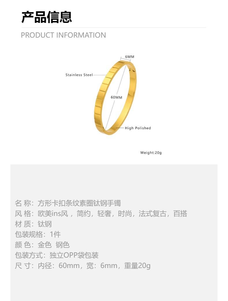 Pulsera Europea y Americana Nueva de Acero Inoxidable de Venta Caliente Chapada en Oro de 18K Pulsera Geométrica Hebilla de Anillo Liso Pulsera de Acero de Titanio Rayada