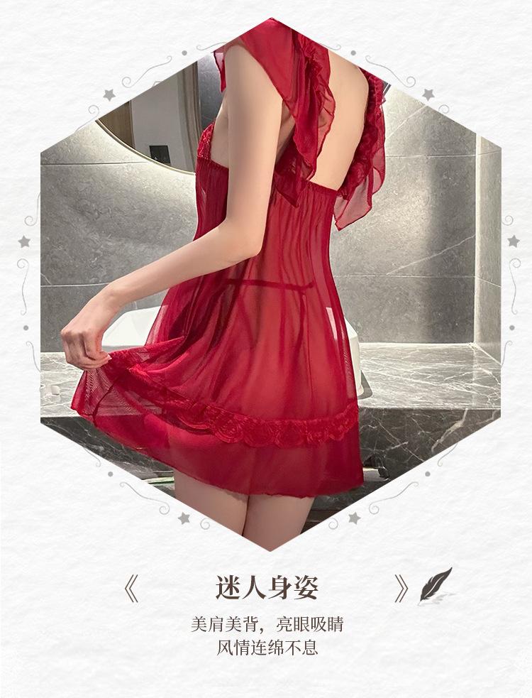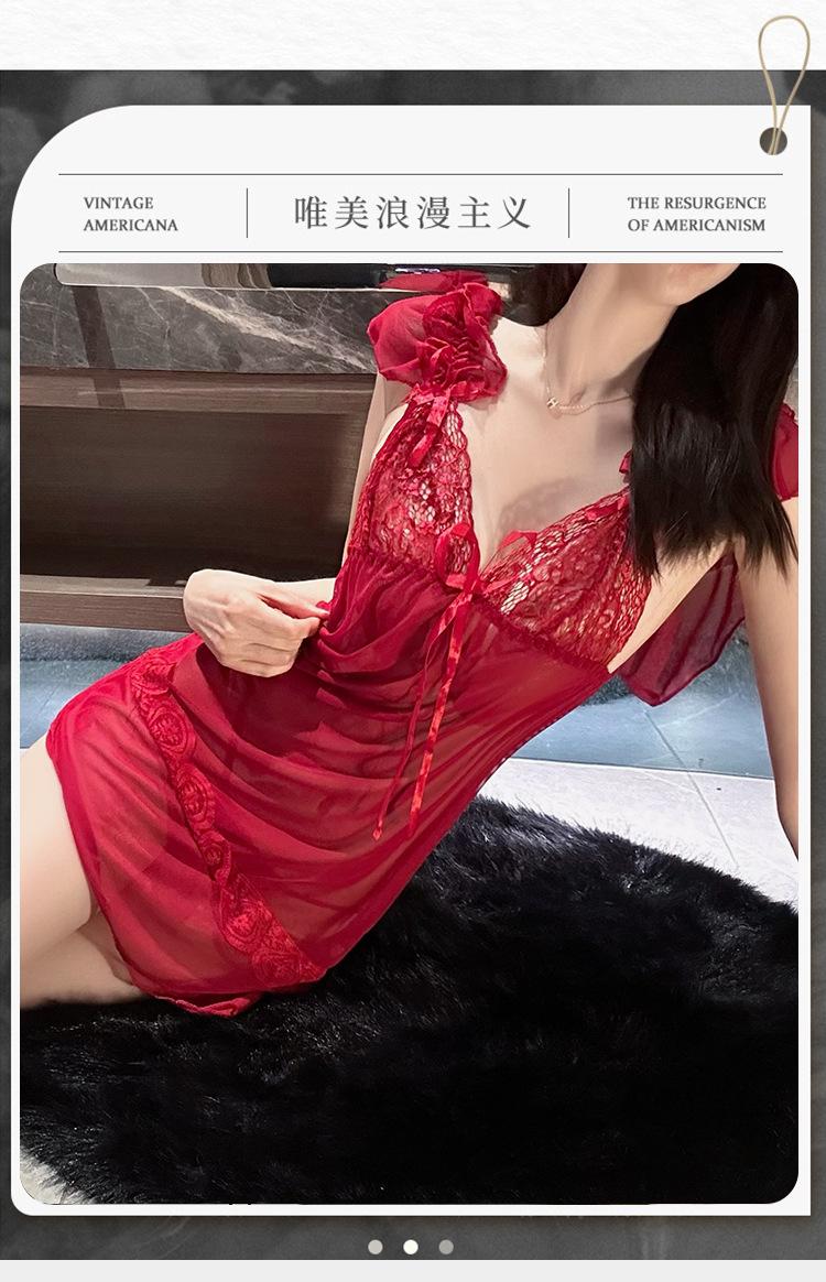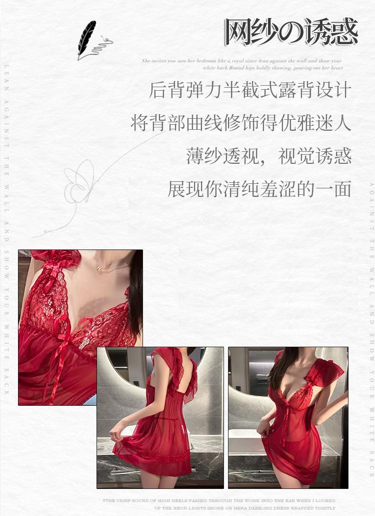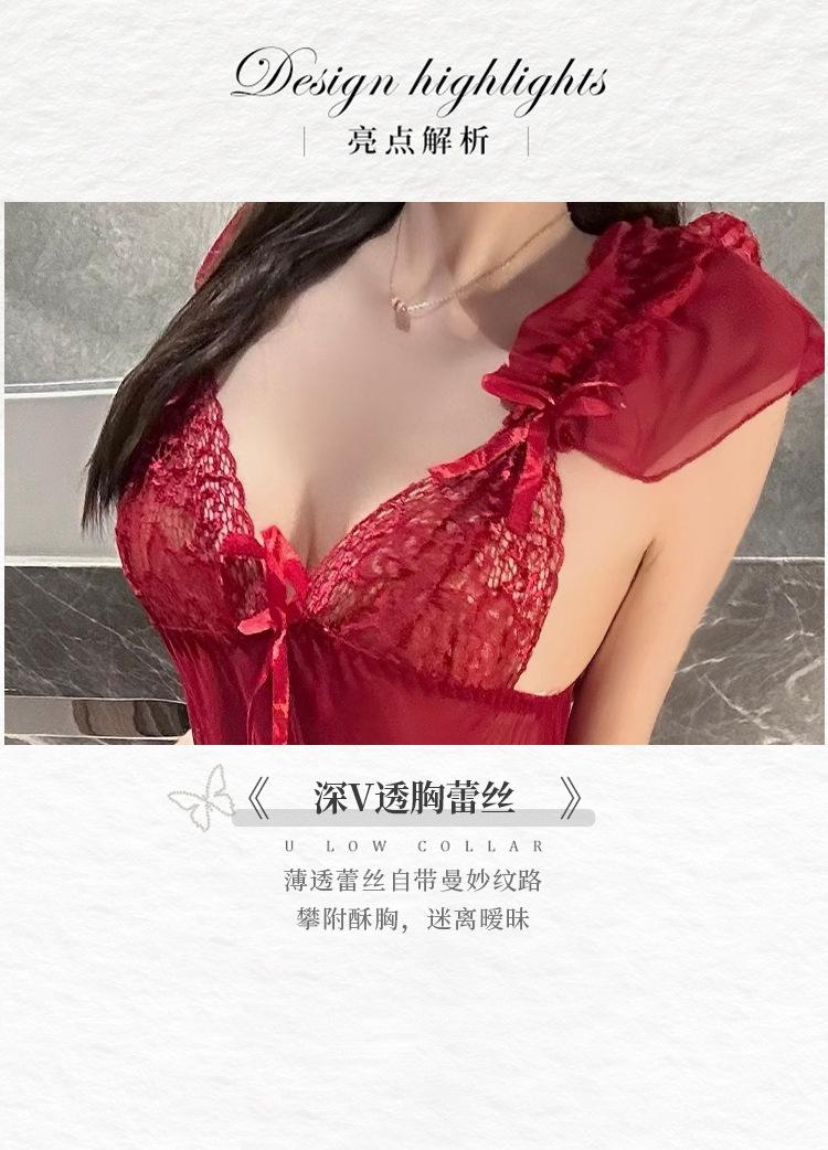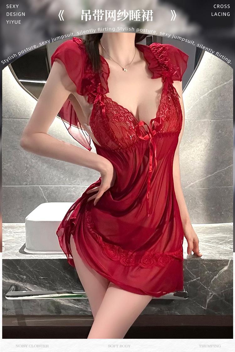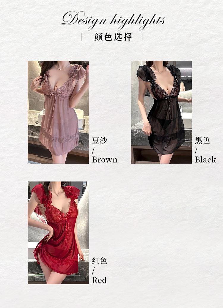 Pijama sexy de encaje con escote en V profundo para mujer, ropa interior fina y sexy, uniforme, venta al por mayor, Europa y Estados Unidos