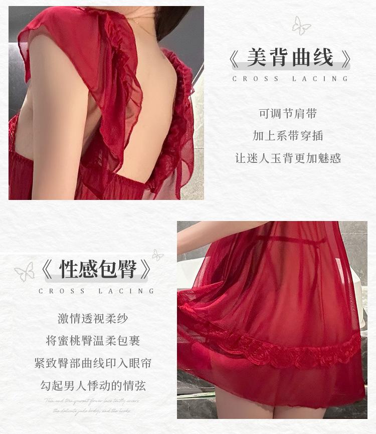 Lencería sexy Milian, camisón sexy sin mangas de talla grande, ropa de casa de estilo coreano, tirantes de encaje, ropa sexy de puro deseo