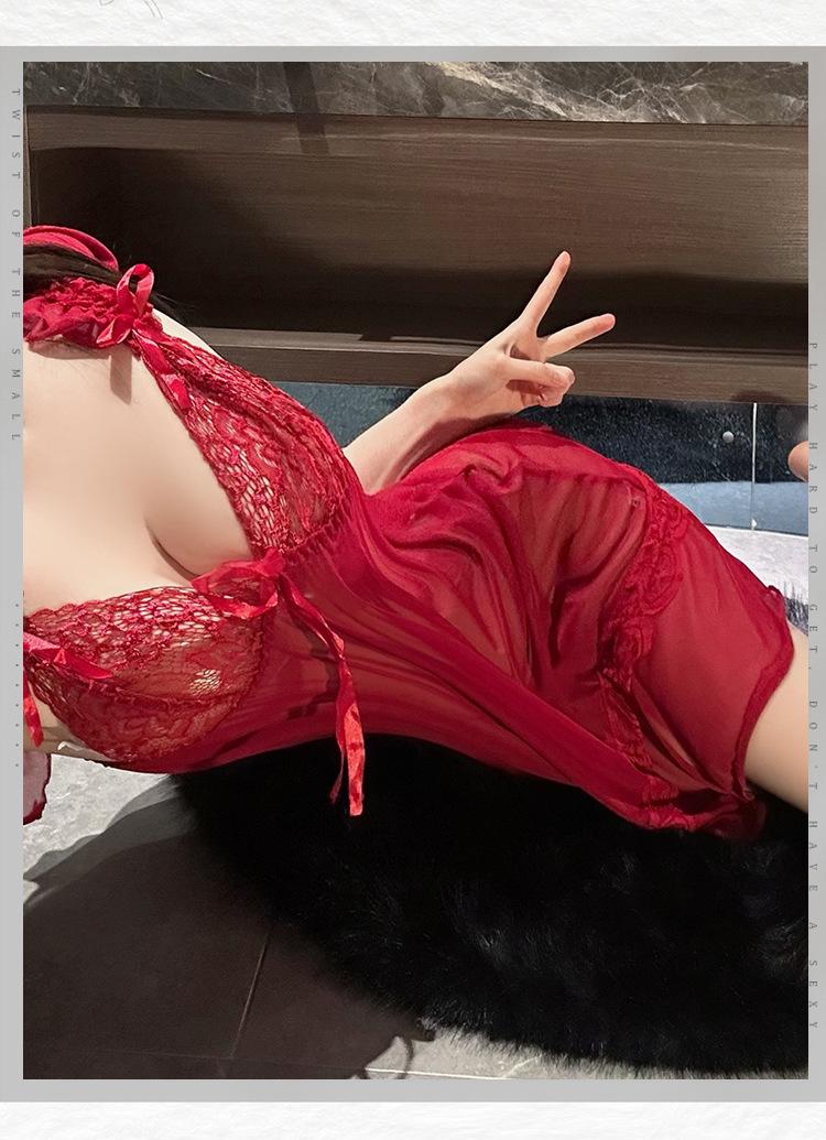Lencería sexy Milian con bordado de cuello halter, falda de malla a la cadera, cintura reveladora, hermosa espalda, deseo puro, vestido sexy, temperamento de secretaria
