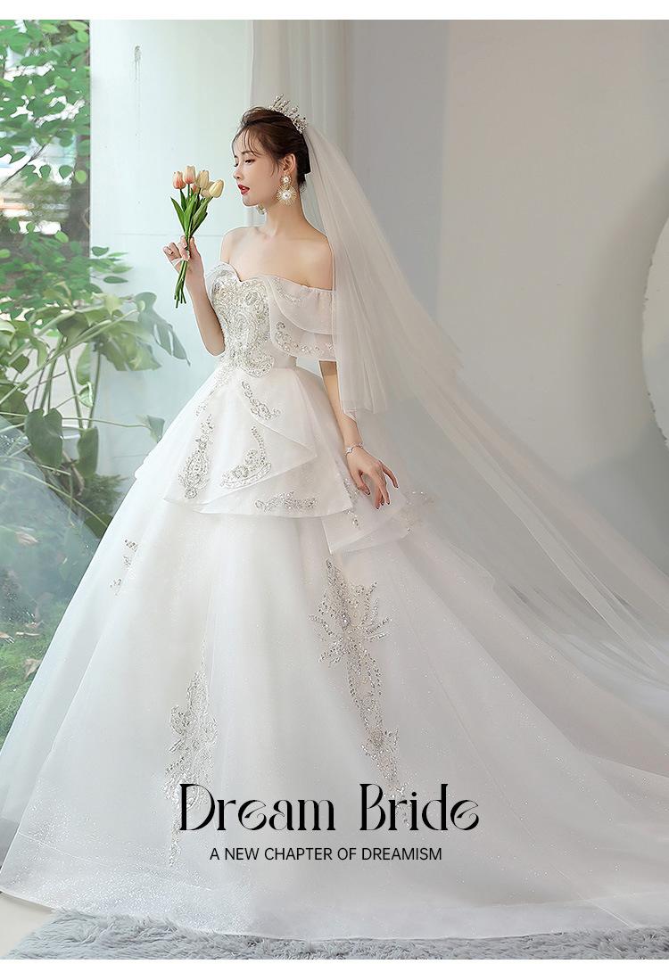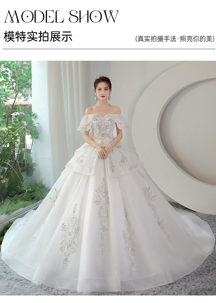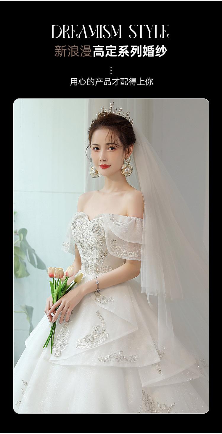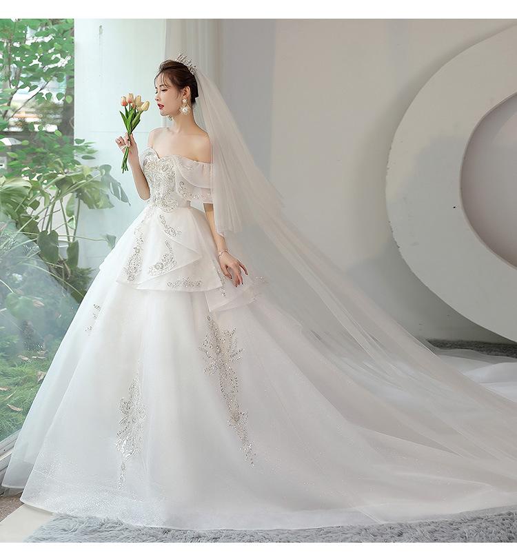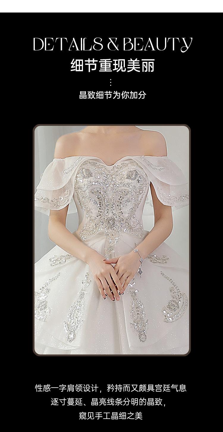 Vestido de Novia Principal con Hombros Descubiertos para Novias 2025 Nuevo Estilo para Mujer Cola Larga Artesanía Pesada Francesa Estilo Corte Cubre Brazos Talla Grande