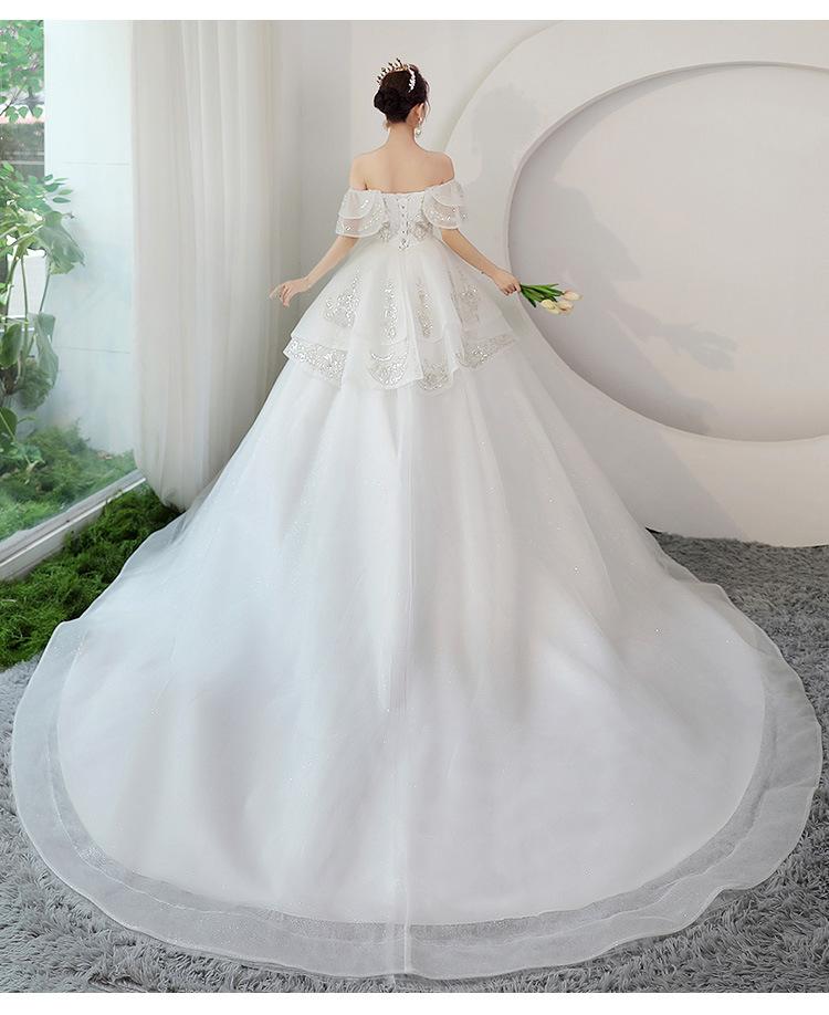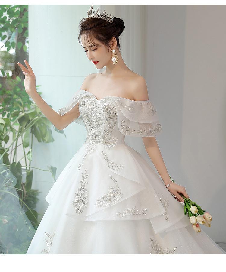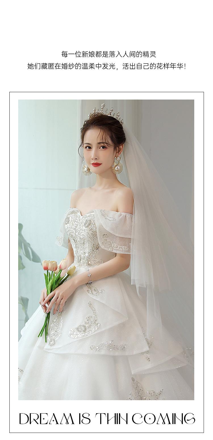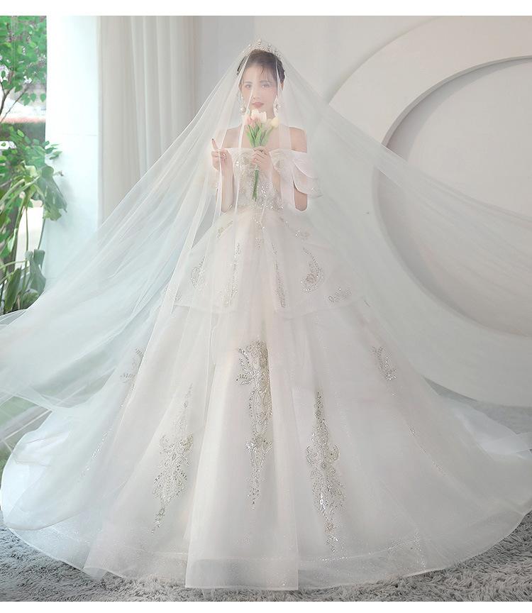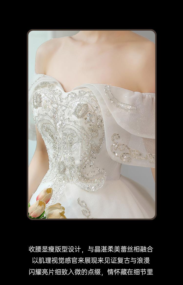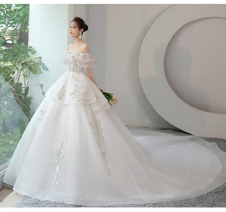 Vestido de Novia Principal con Hombros Descubiertos para Novias 2025 Nuevo Estilo para Mujer Cola Larga Artesanía Pesada Francesa Estilo Corte Cubre Brazos Talla Grande