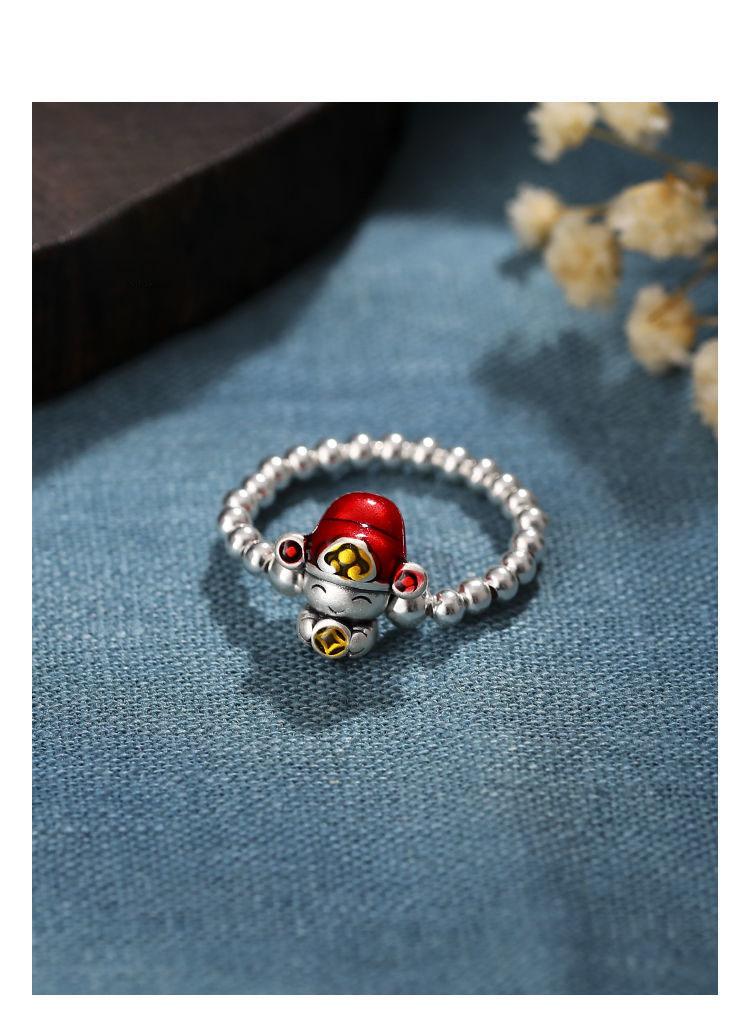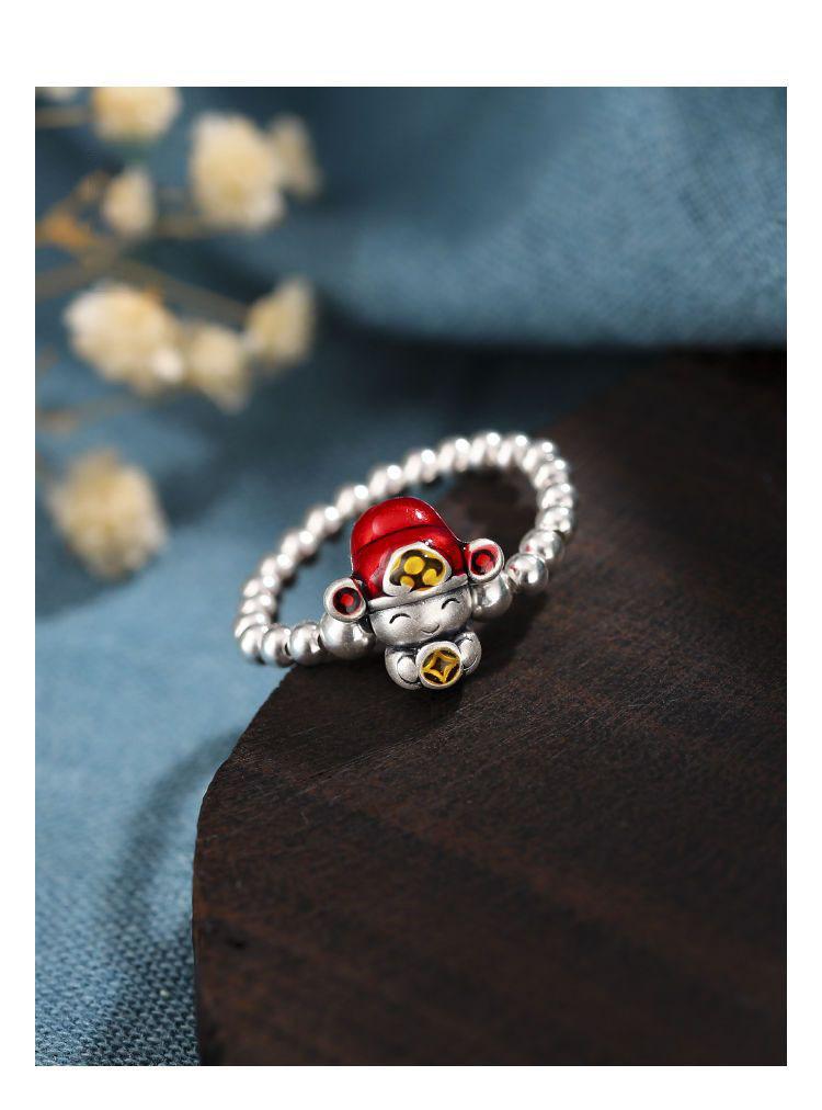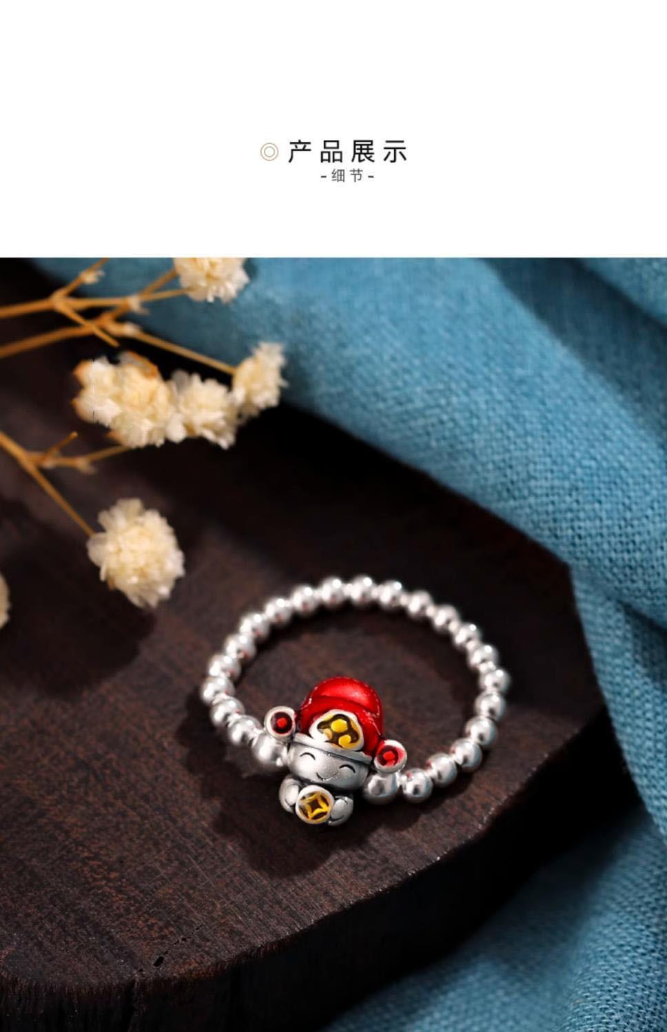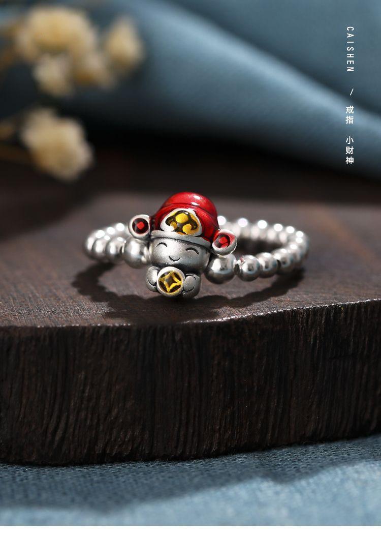 Anillo Dios de la Riqueza Anillo de Cuentas Redondas Nicho Personalidad Anillo Antiguo Tesoro de Mujer Regalo de Año Nuevo para Novia