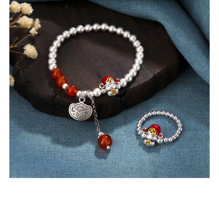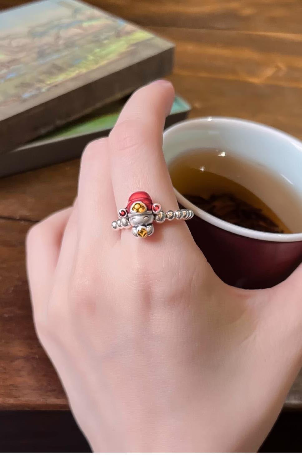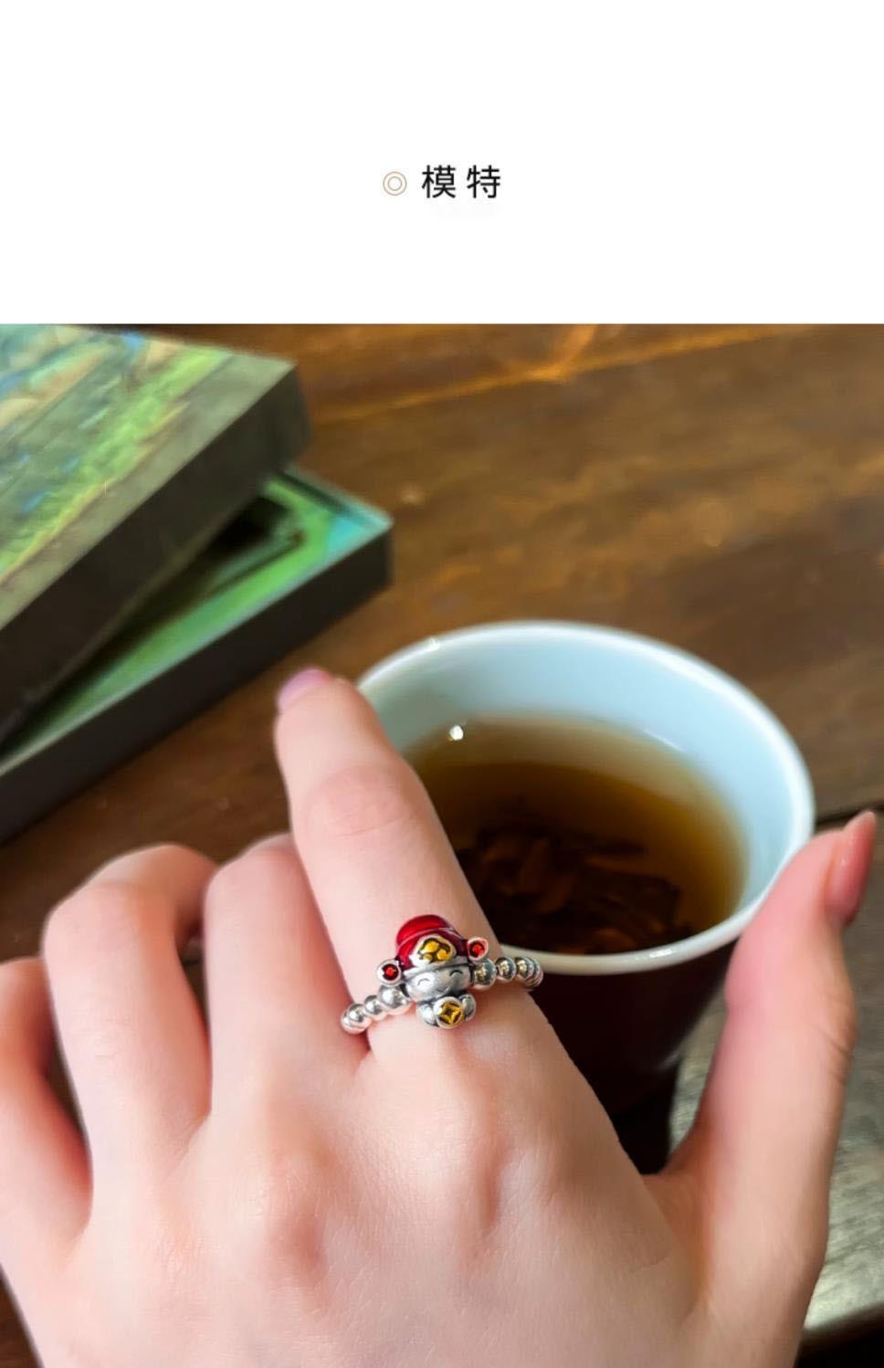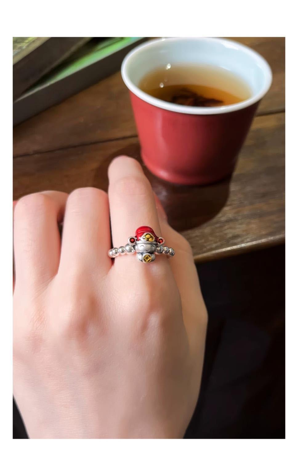 Anillo Dios de la Riqueza Anillo de Cuentas Redondas Nicho Personalidad Anillo Antiguo Tesoro de Mujer Regalo de Año Nuevo para Novia