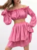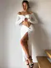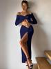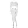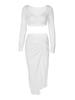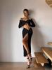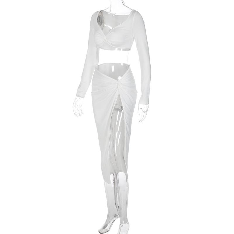 Traje Transfronterizo de Manga Larga con Cuello en V Primavera 2025 Amazon para Mujer Nuevo Sexy Ajustado de Cintura Alta Falda con Abertura Conjunto de Dos Piezas