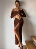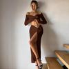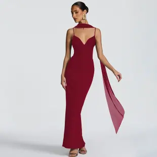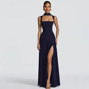 Estilo europeo y americano transfronterizo 2025 moda de invierno nuevo vestido largo halter temperamento de cinta sexy vestido ajustado al cuerpo al por mayor