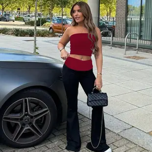 Moda Europea y Americana para Mujer 2025 Invierno Nuevo Conjunto de Dos Piezas de Pantalón Largo Acampanado Bandeau Ajustado Corte Slim Traje Moderno con Parche de Bloque de Color Mujer