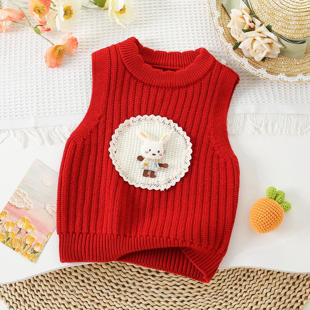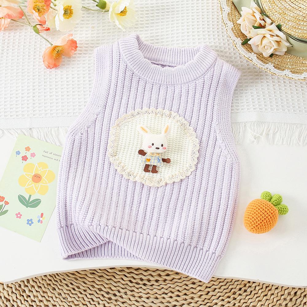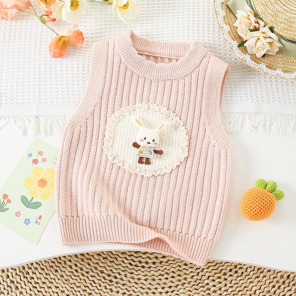 Chaleco Suéter para Niñas 2024 Otoño e Invierno Nuevo Bebé Coreano Lindo Chaleco Tejido Bebé Infantil Dibujos Animados Chaleco