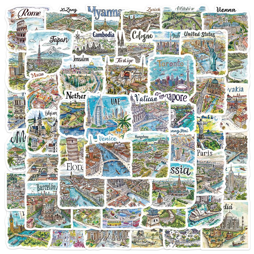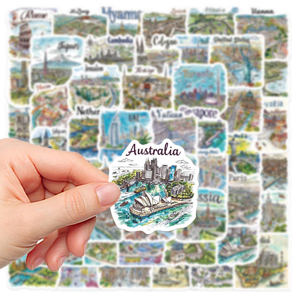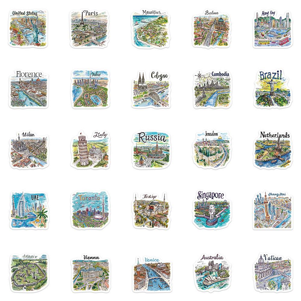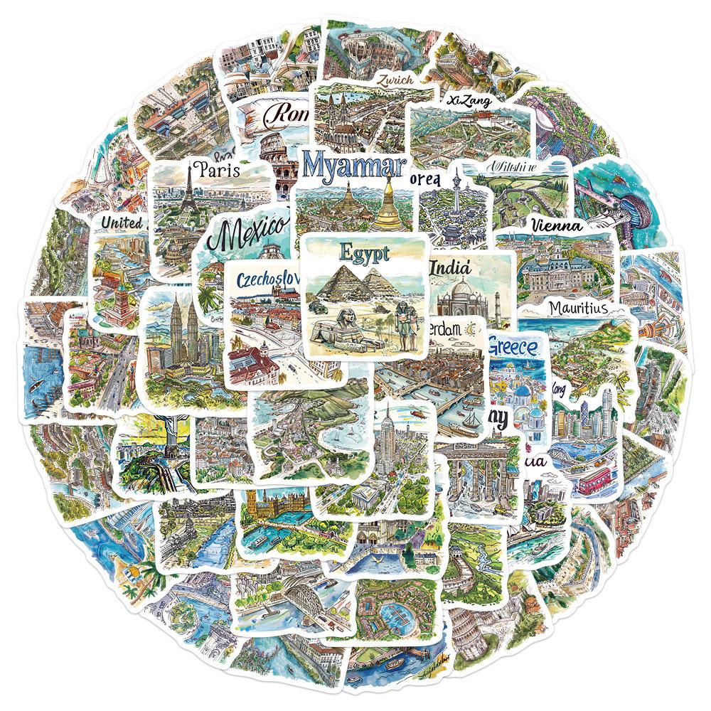 50 pegatinas de mapa de viaje pintadas a mano, pequeñas y frescas, para decorar portátiles, maletas, libros de mano y pegatinas transfronterizas.