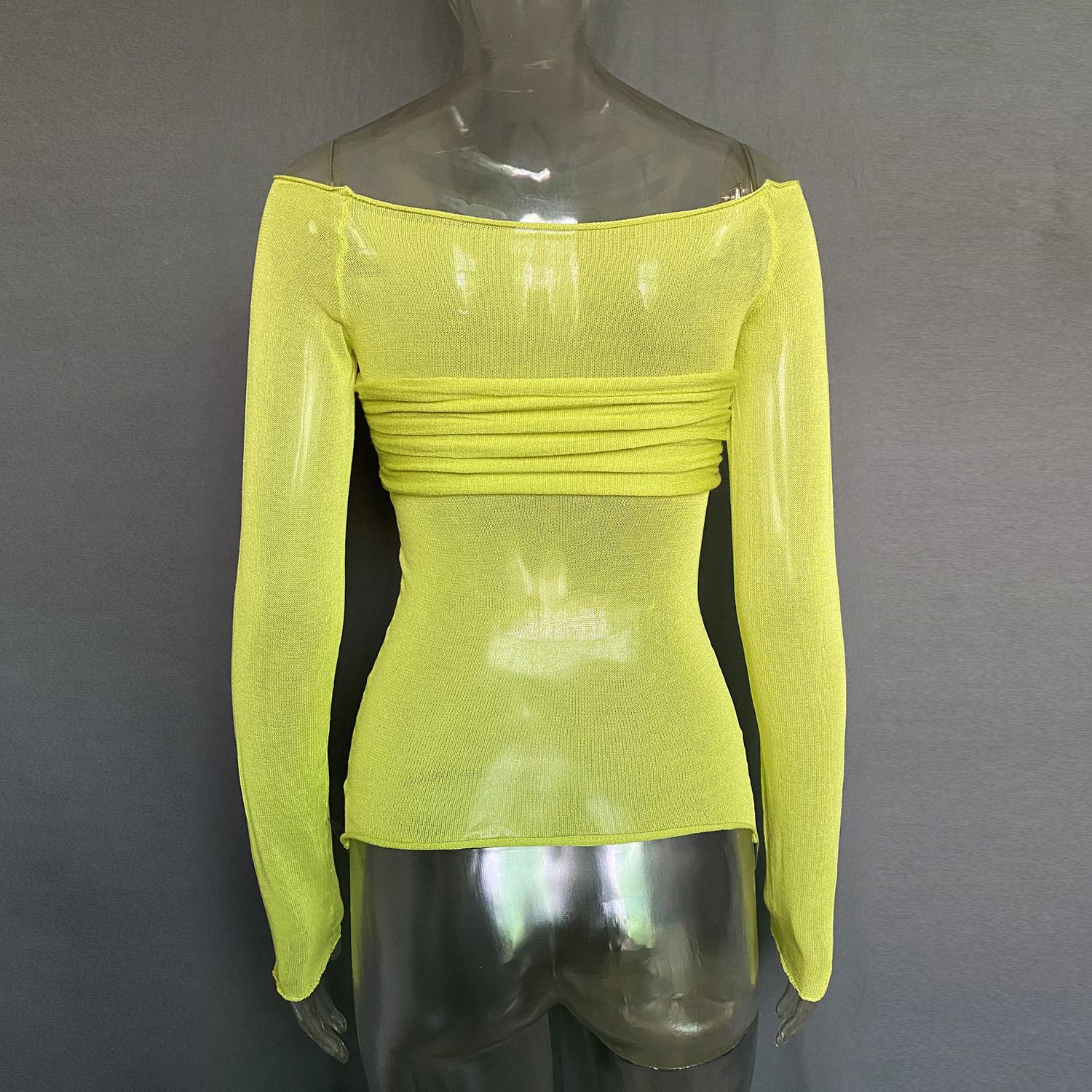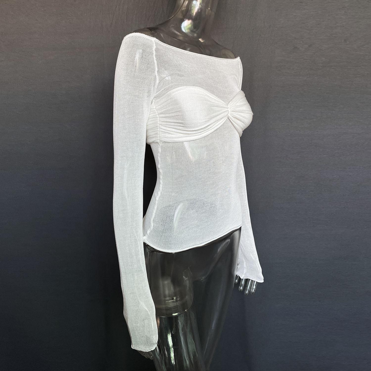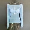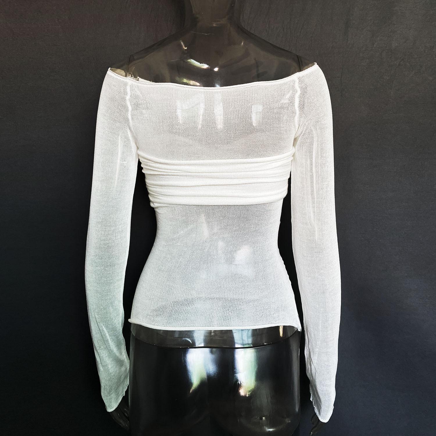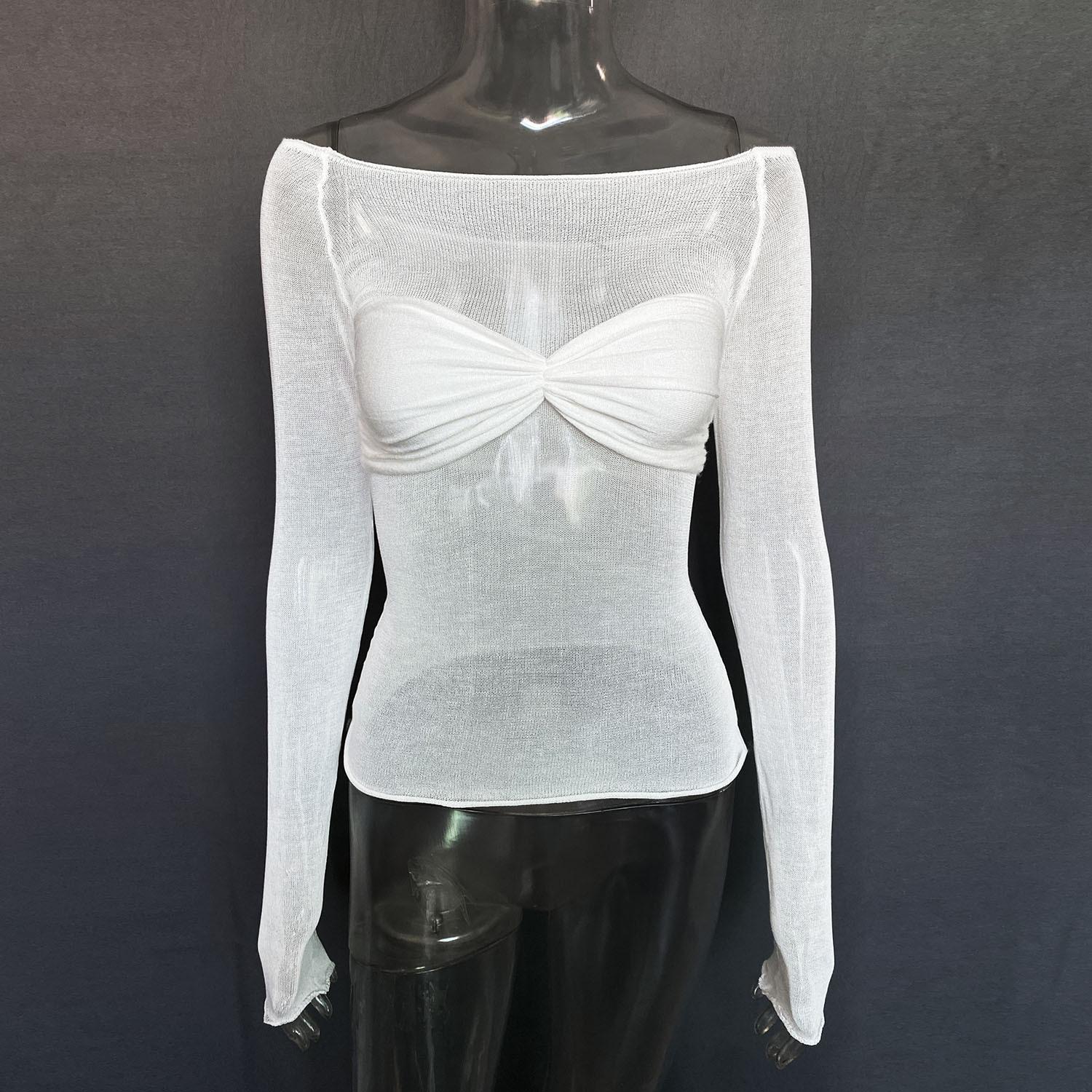 2023 Primavera/Verano Transfronterizo Amazon AliExpress Estación Independiente Ropa de Mujer Más Vendida Camiseta Ligera Transparente con Hombros Descubiertos