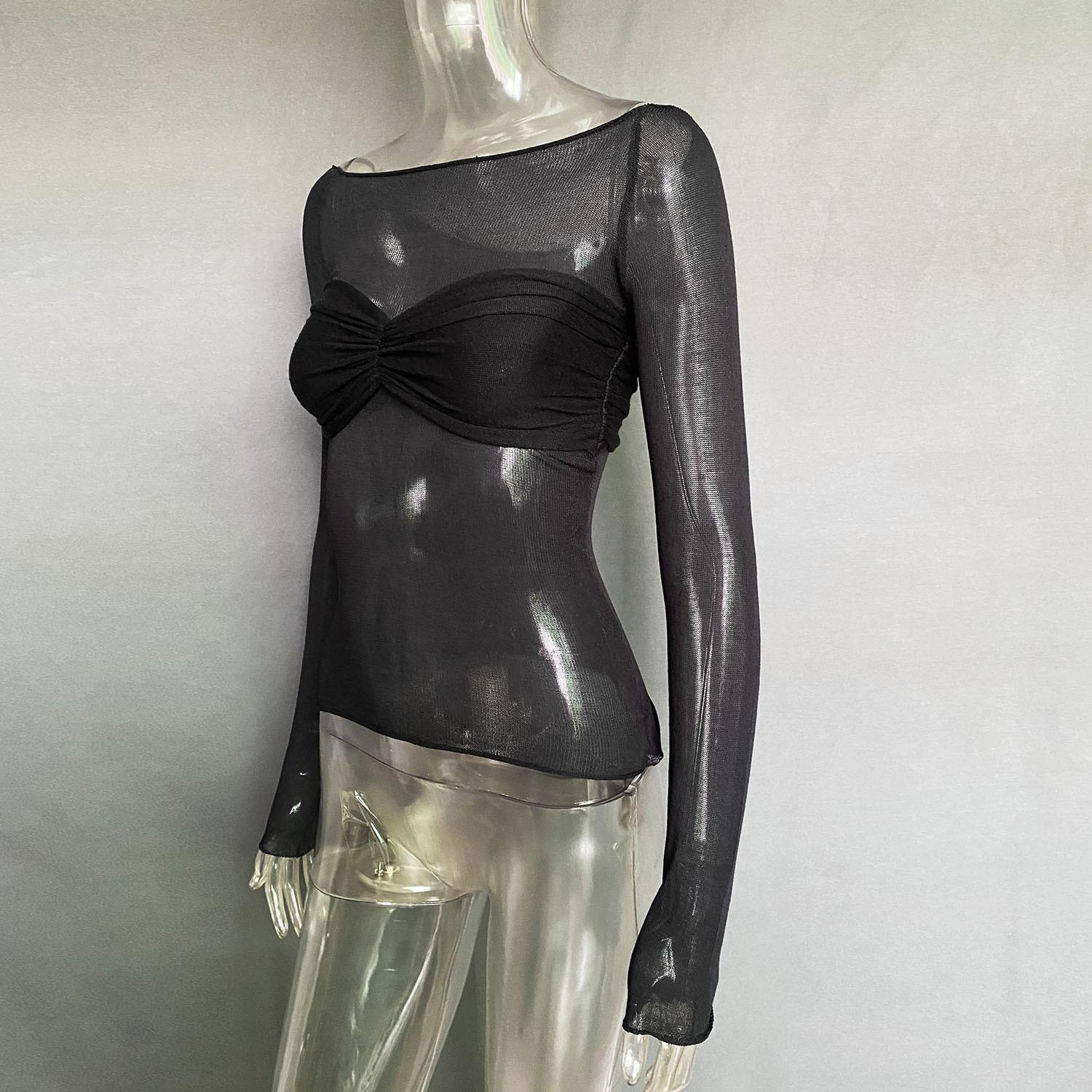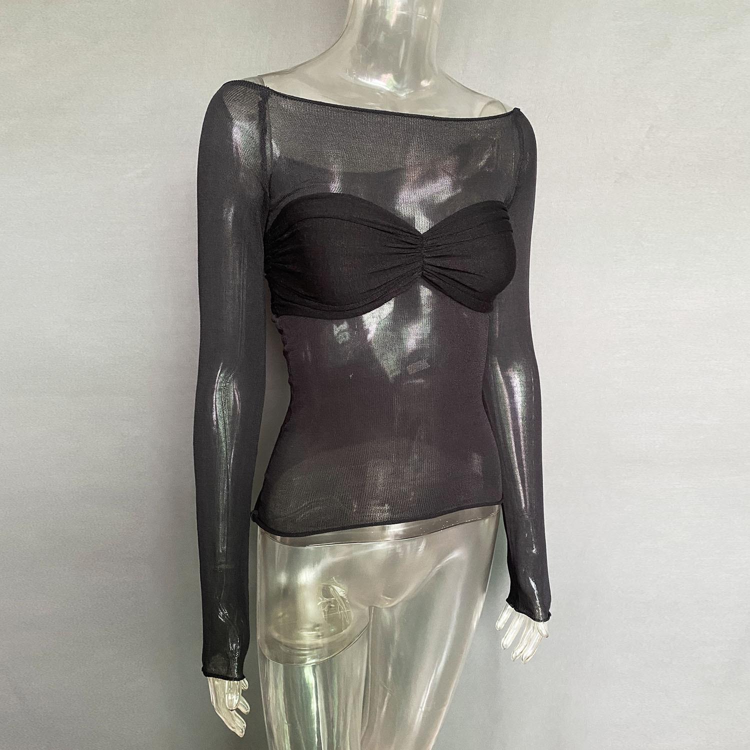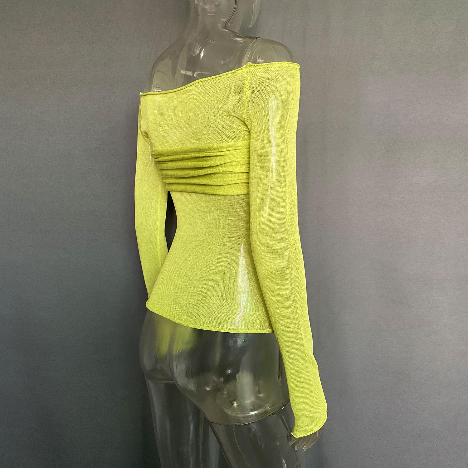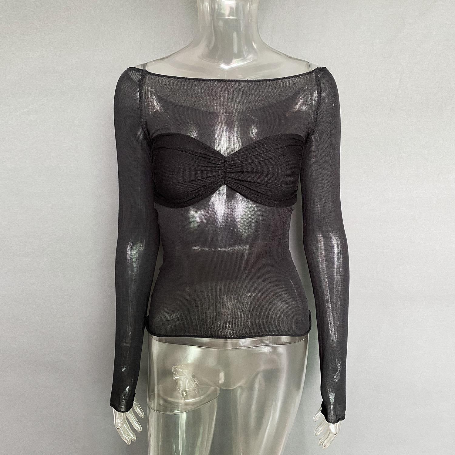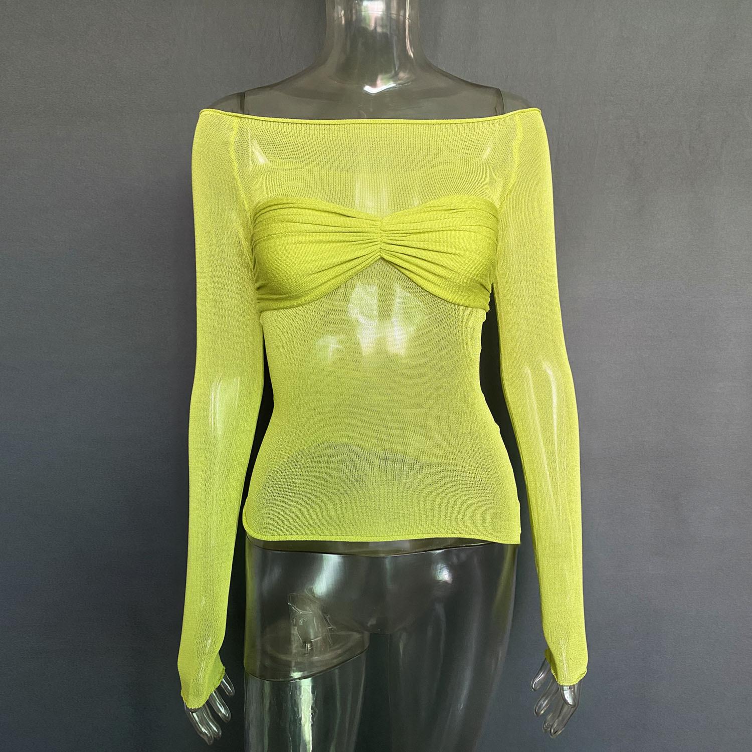 2023 Primavera/Verano Transfronterizo Amazon AliExpress Estación Independiente Ropa de Mujer Más Vendida Camiseta Ligera Transparente con Hombros Descubiertos