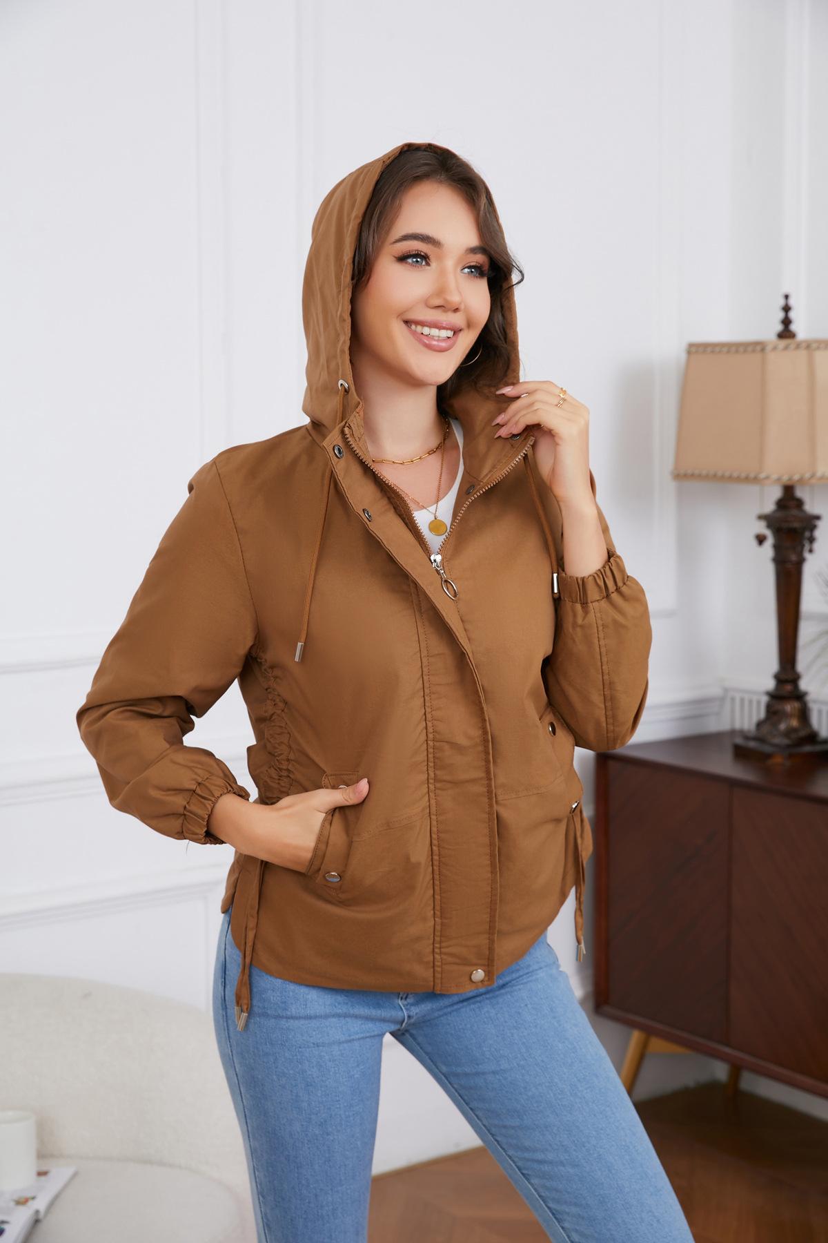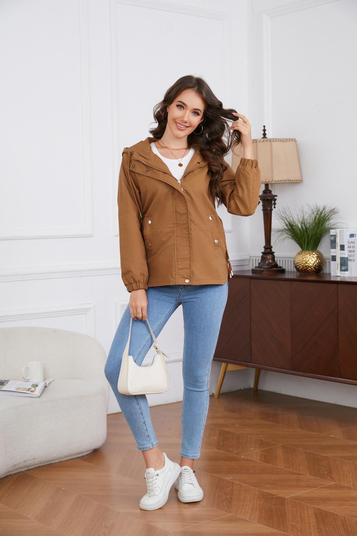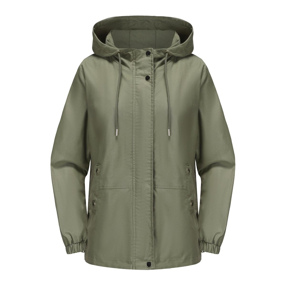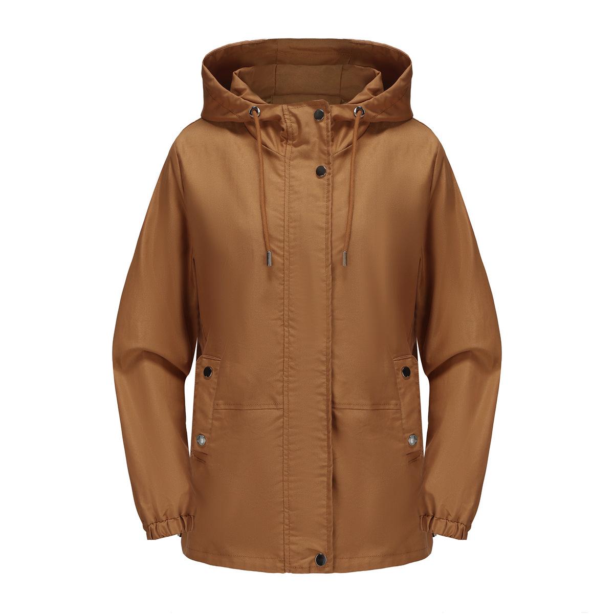 Abrigo informal de primavera y otoño 2024 para mujer, holgado, resistente al viento, con capucha y manga larga, básico, resistente al viento.