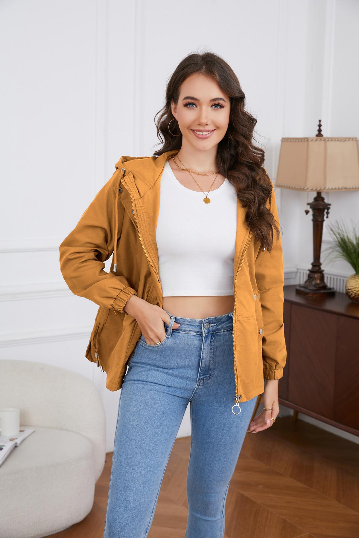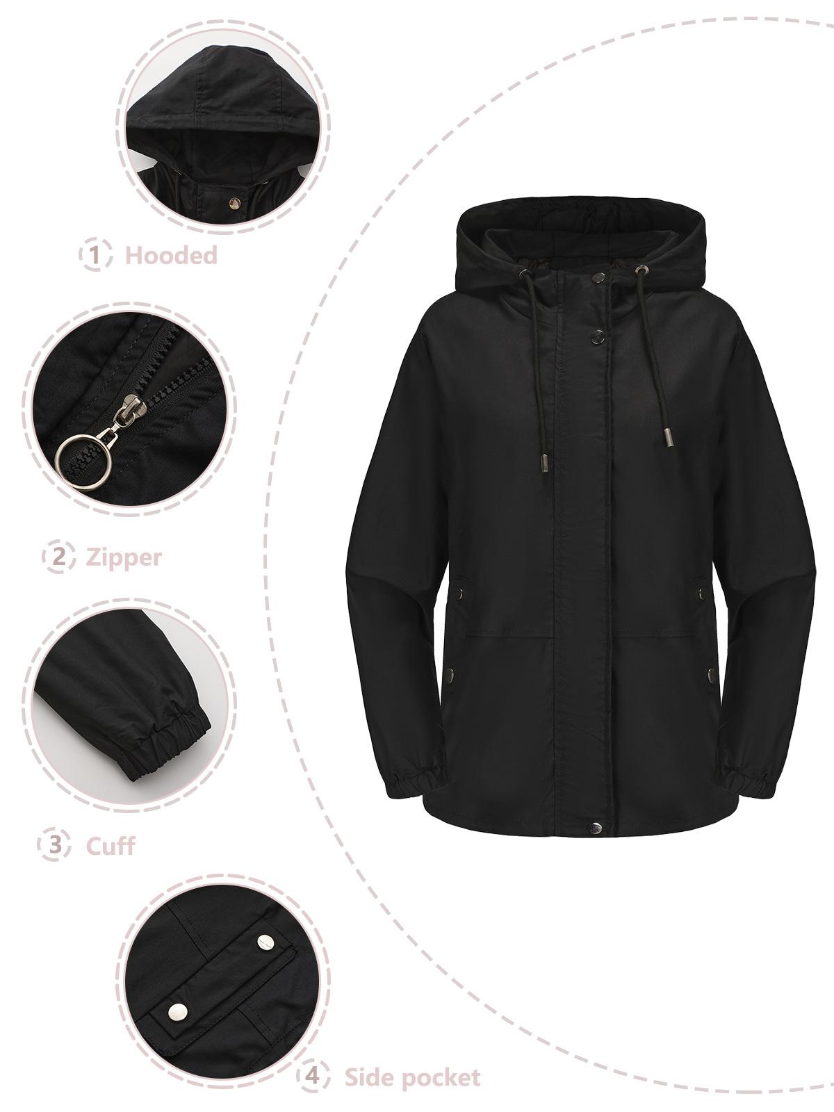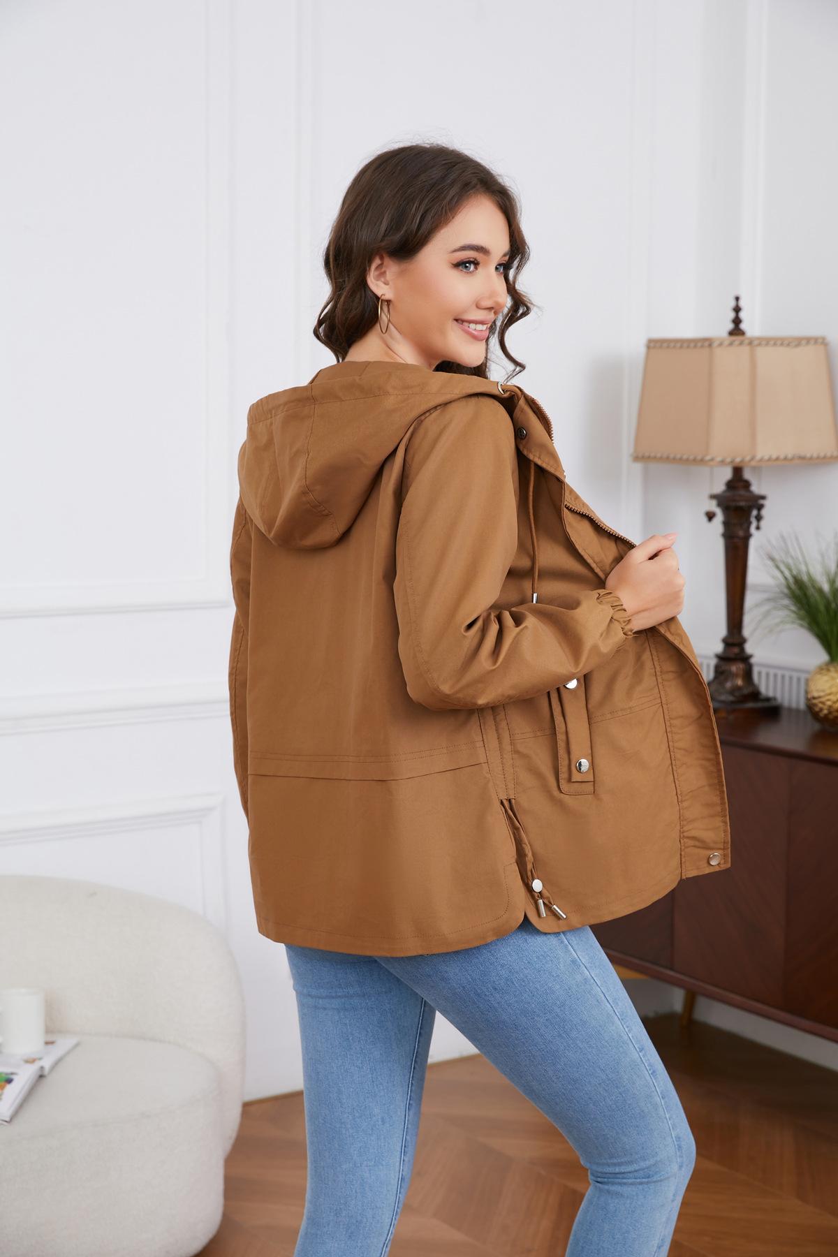 Abrigo informal de primavera y otoño 2024 para mujer, holgado, resistente al viento, con capucha y manga larga, básico, resistente al viento.