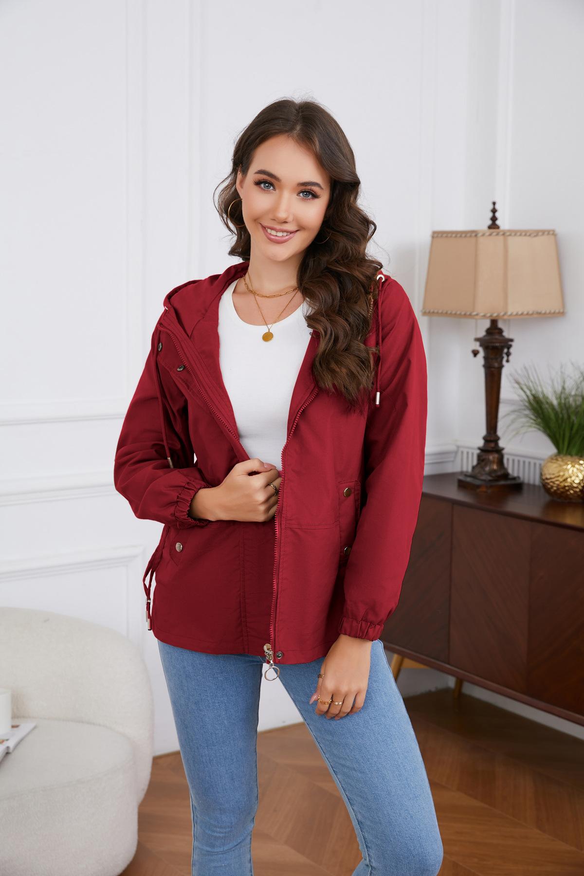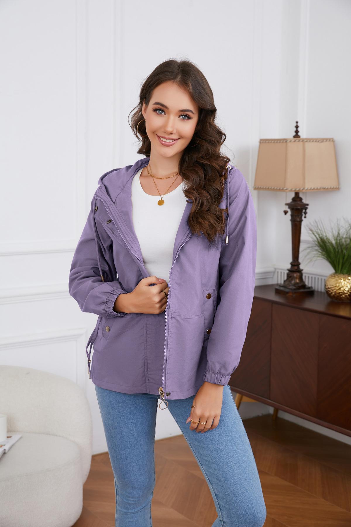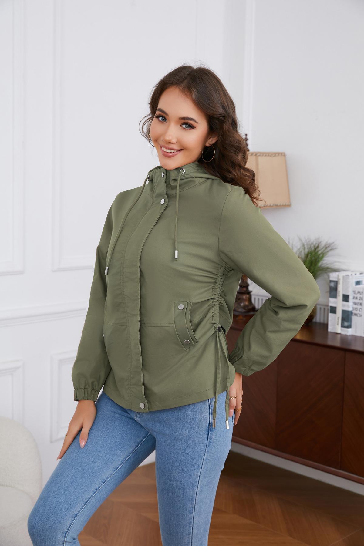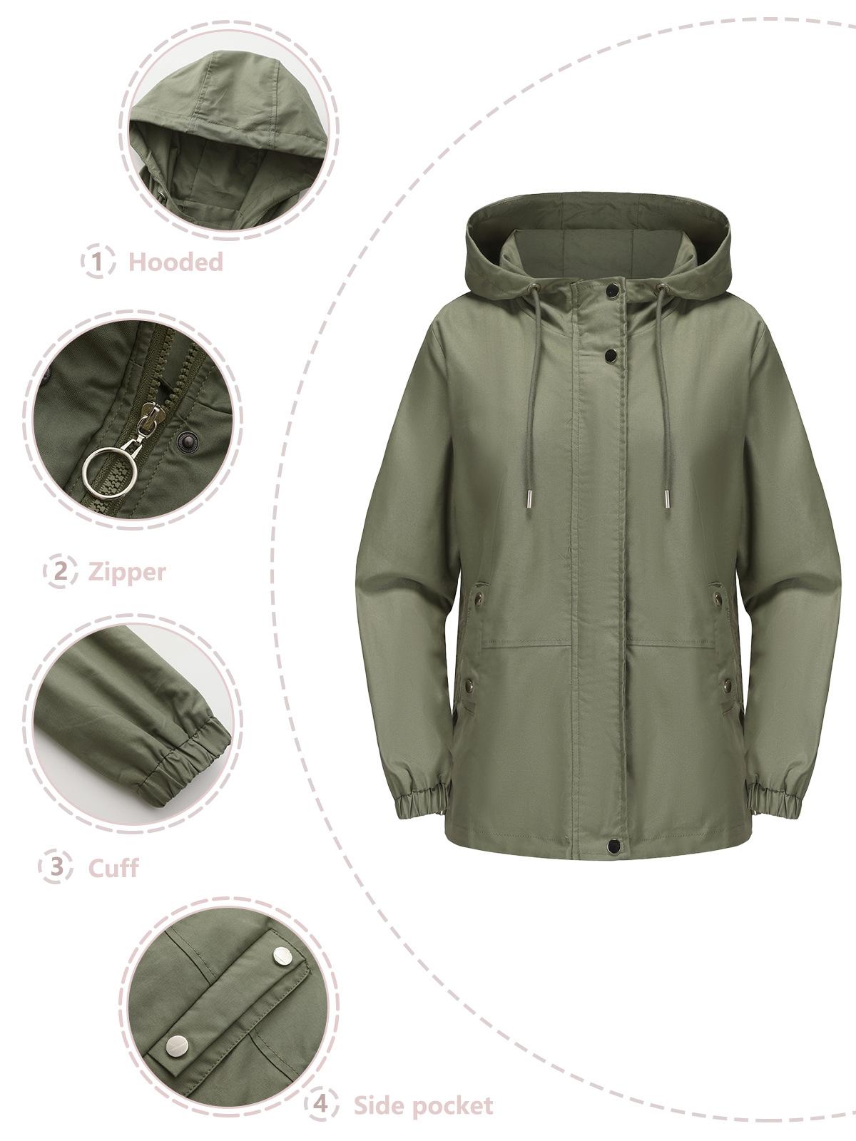 Abrigo informal de primavera y otoño 2024 para mujer, holgado, resistente al viento, con capucha y manga larga, básico, resistente al viento.
