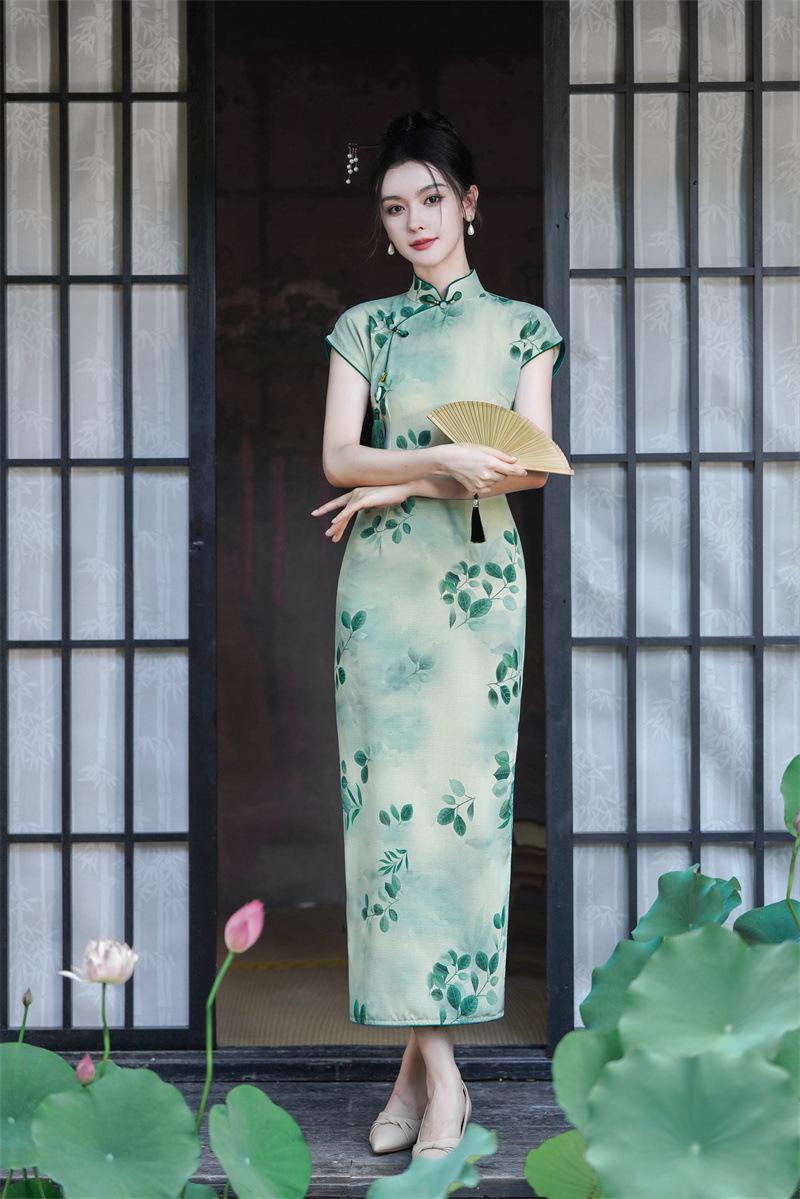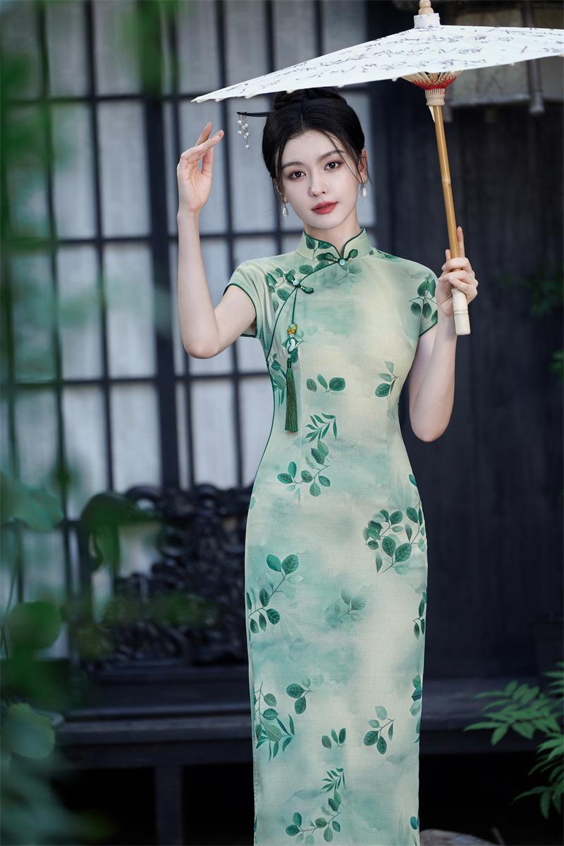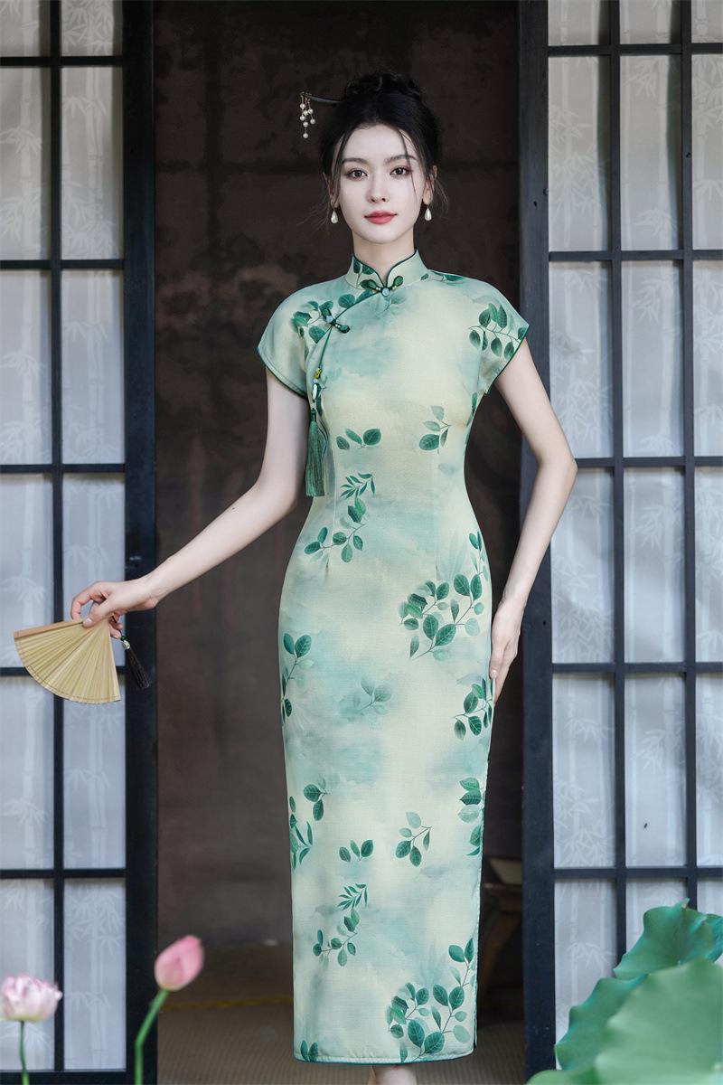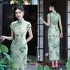 Características:Cheongsam nuevo, tela, textura suave, buena caída, no se encoge, no se decolora, no hace bolitas, ligera elasticidad, más característico de la nación china, bienvenido a comprar,
