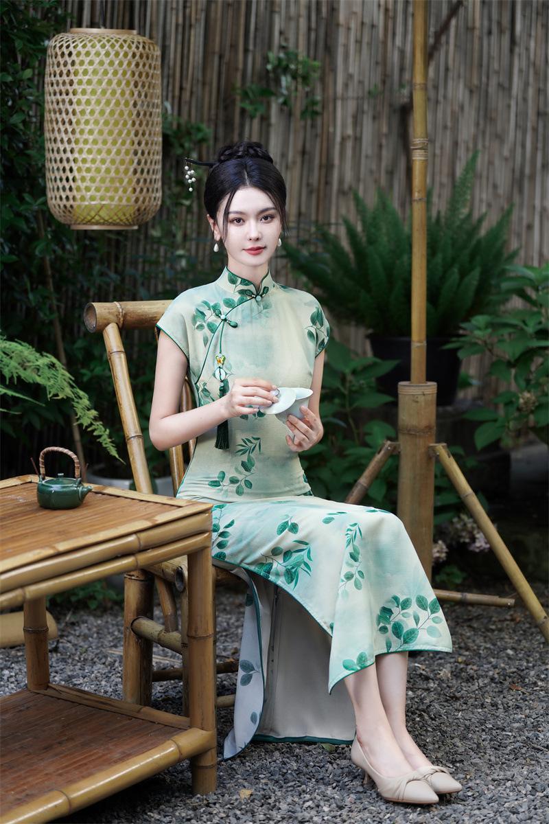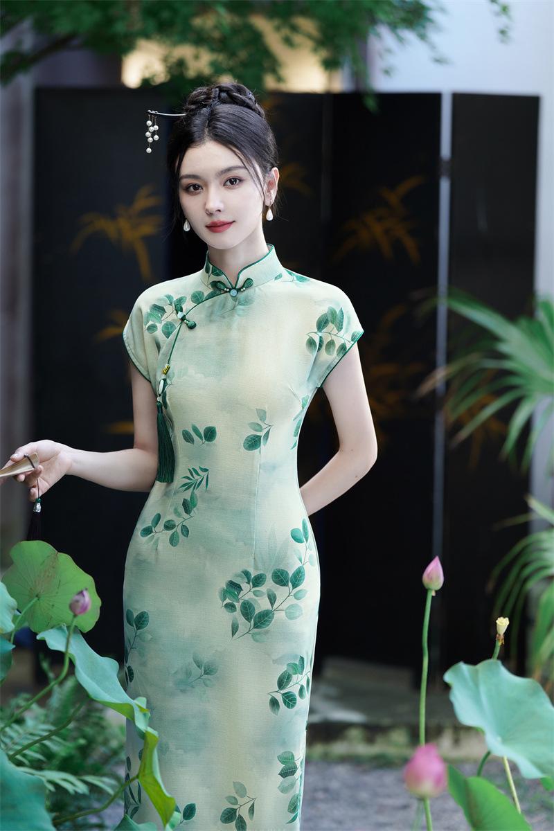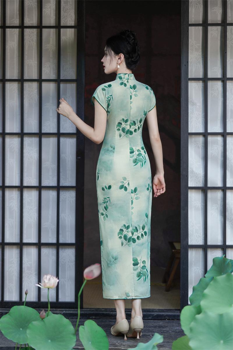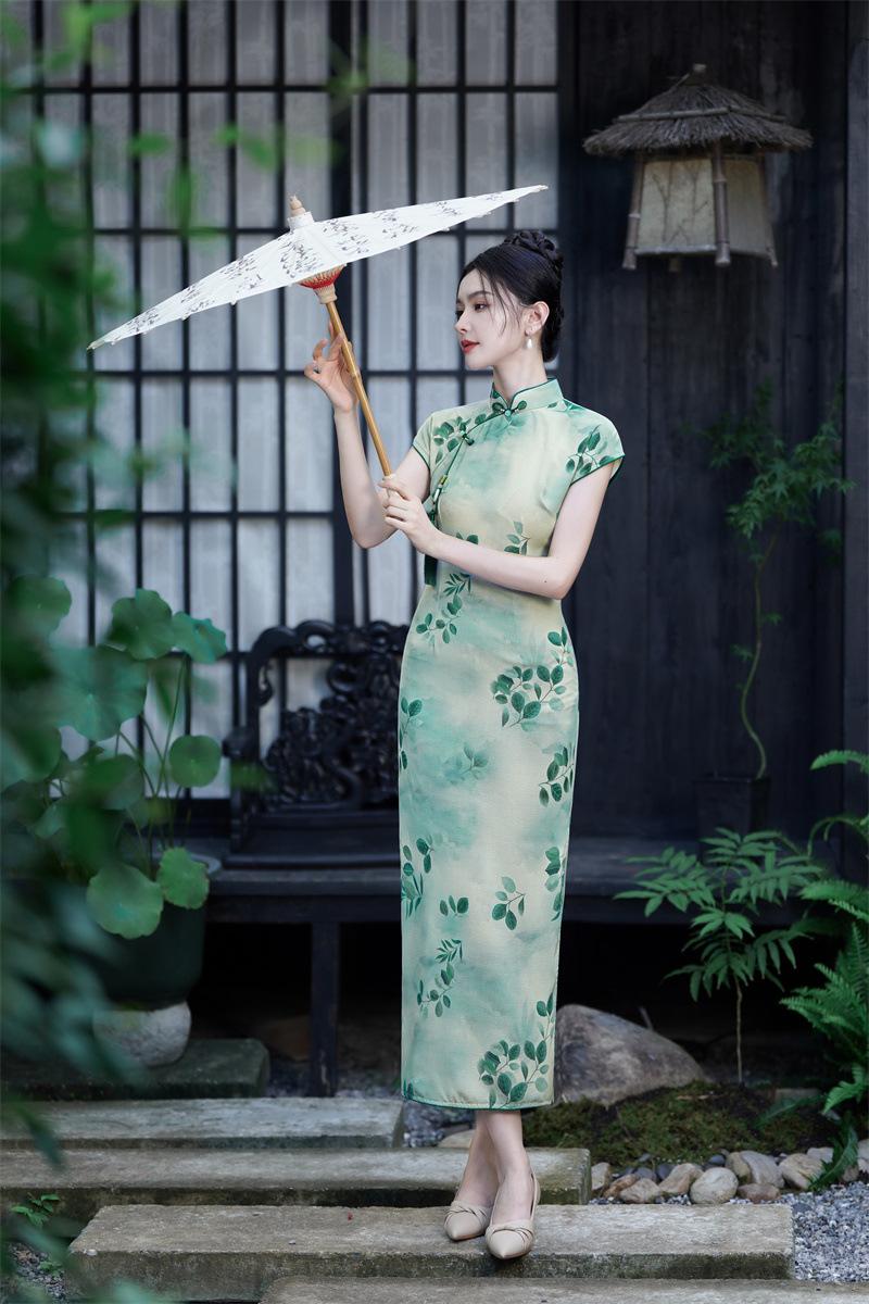 Características:Cheongsam nuevo, tela, textura suave, buena caída, no se encoge, no se decolora, no hace bolitas, ligera elasticidad, más característico de la nación china, bienvenido a comprar,