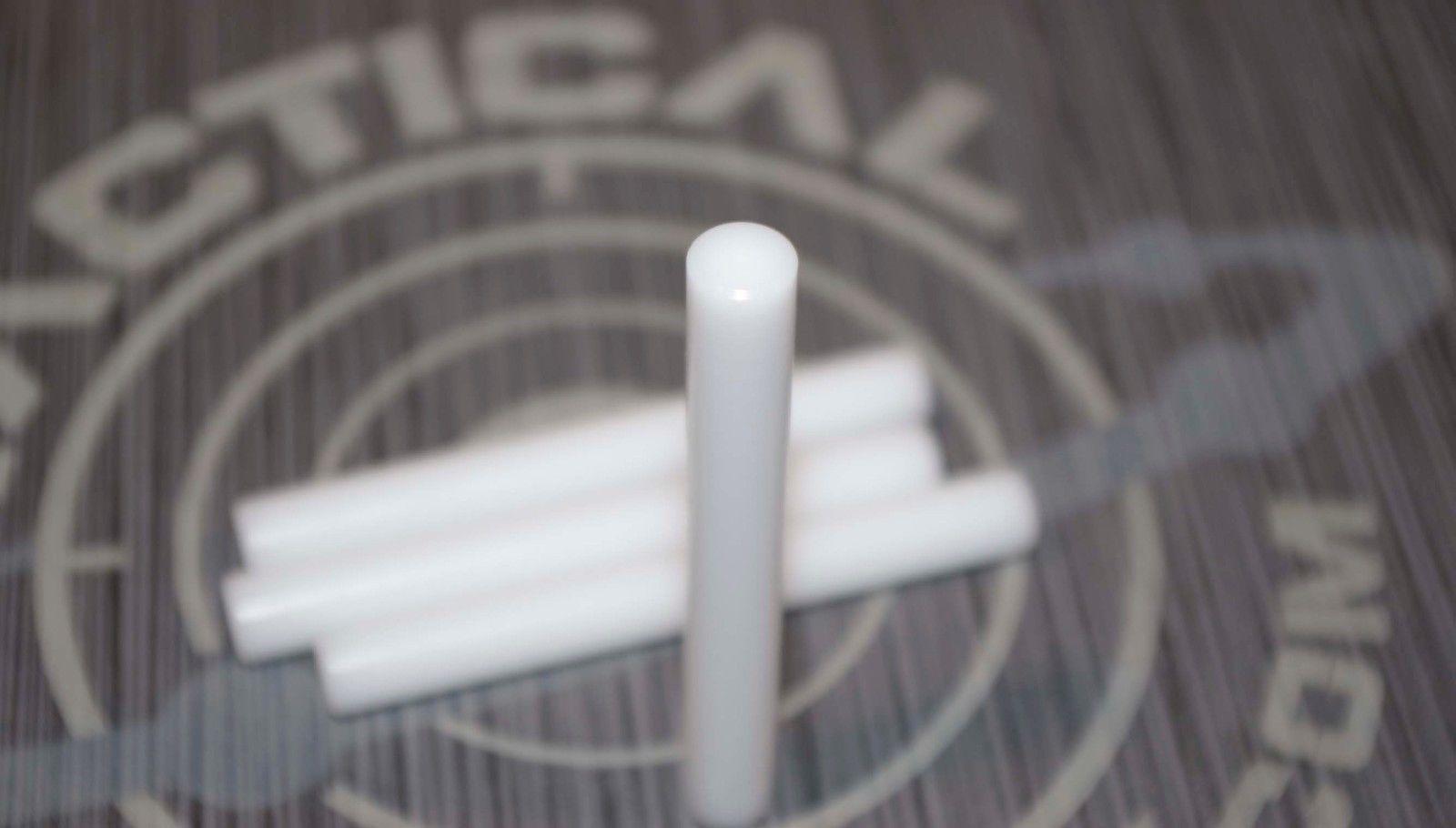 Herramienta de remoción de mira delantera simple y efectiva que funcionará con Glock y 1911 que tengan una mira delantera estilo cola de milano. Este botador está hecho de un polímero especial que no se astillará al golpearlo con un martillo, pero tiene la fuerza suficiente para mover una mira delantera de cola de milano. Nuestro botador es una mejor opción que el latón para la remoción de la mira delantera porque no dejará una ""marca de latón"" en la corredera"