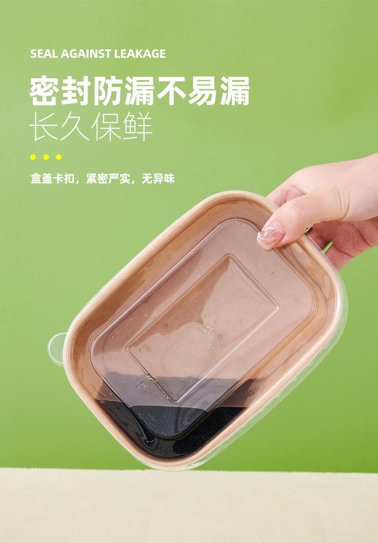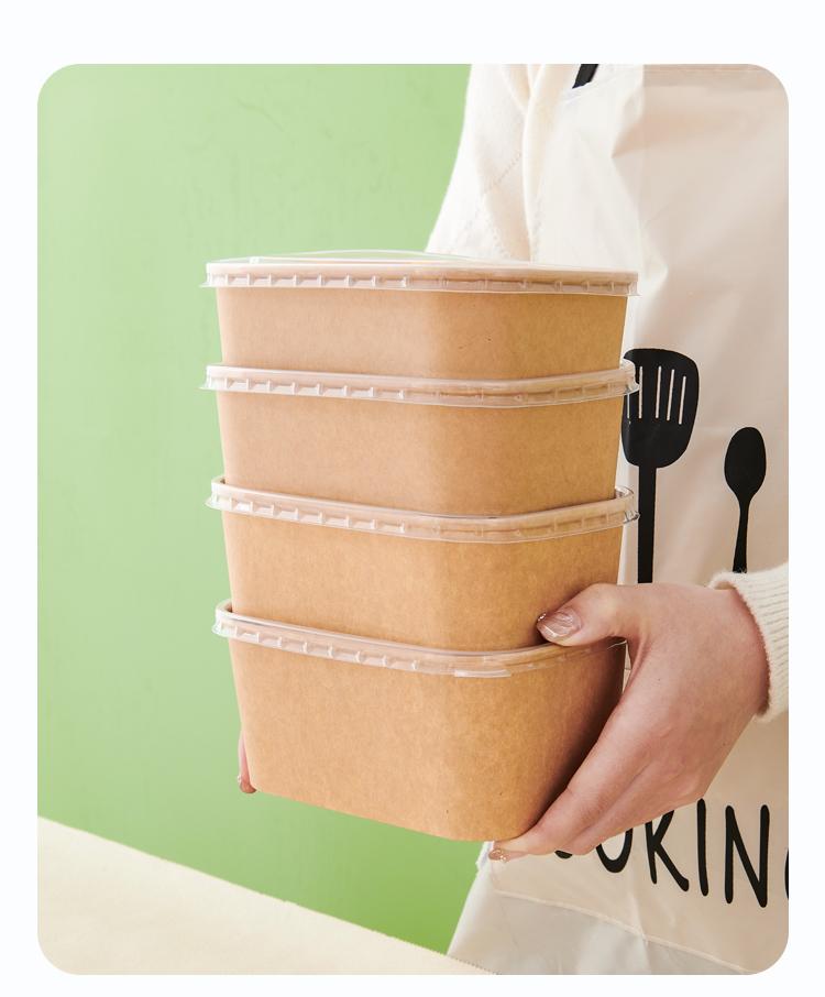 Caja de embalaje desechable de papel kraft grueso, lonchera rectangular para llevar, lonchera ligera para microondas con tapa