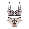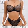 Lencería Sexy de Encaje Europeo y Americano Transfronterizo con Tirantes de Color Contrastante, Realce de Busto Pequeño, Push-Up, Recolección Lateral de Busto, Set de Brasier Anticaída