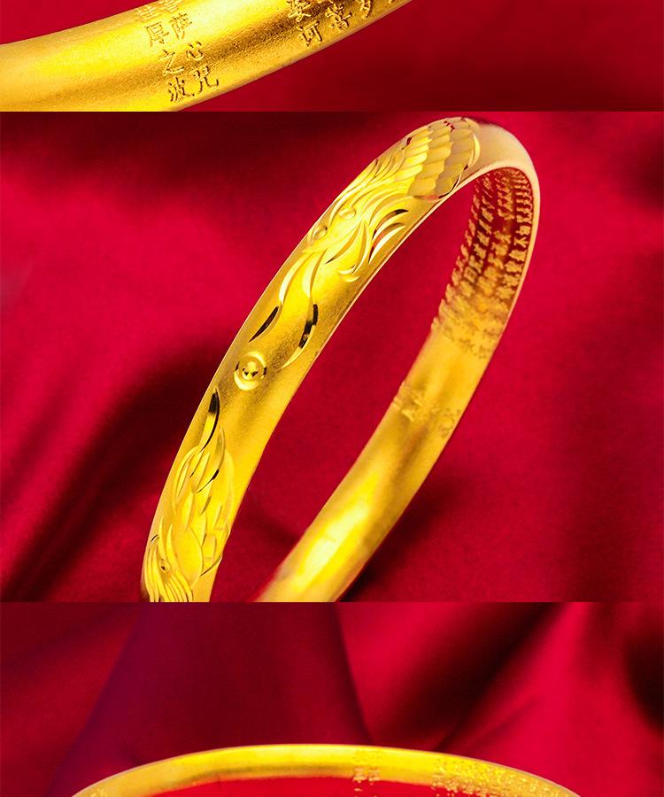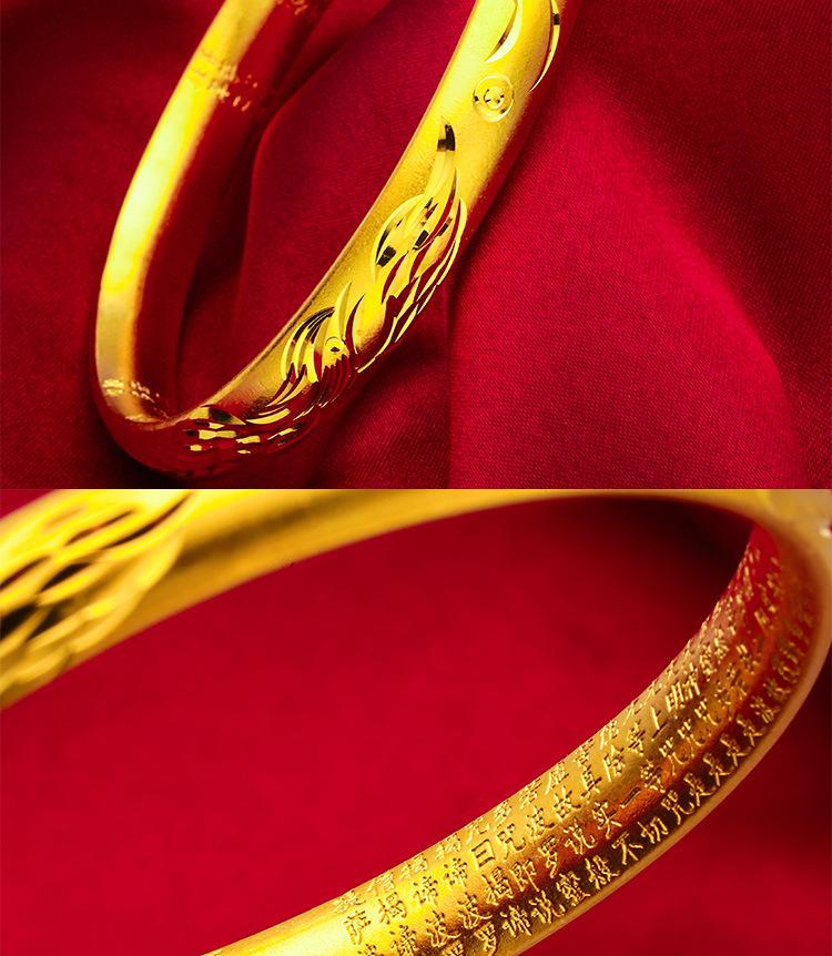 Pulsera vietnamita de oro arena dragón y fénix pulsera de cuentas de dragón y fénix antiguos pulsera cerrada del Sutra del Corazón chapado en oro de 24k al por mayor
