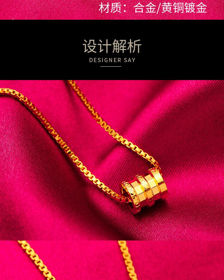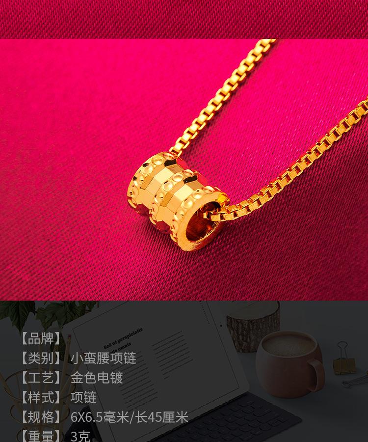 Collar con colgante de cintura pequeña de oro arena vietnamita, cadena para clavícula de moda para mujer chapada en oro latón, venta al por mayor de transmisión en vivo