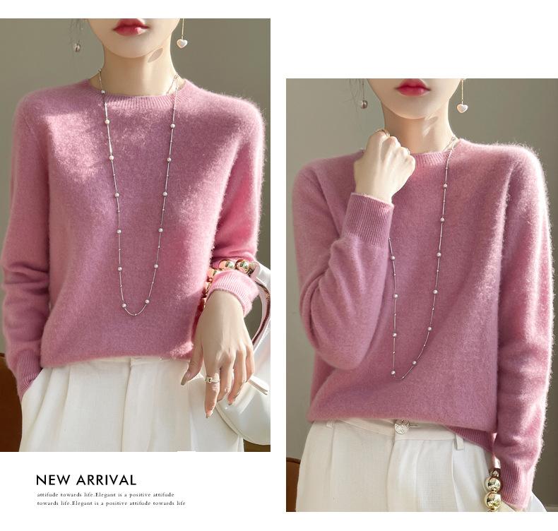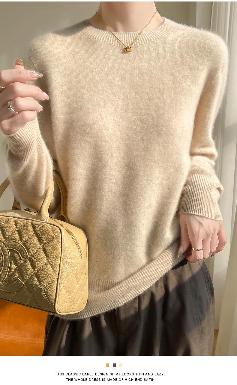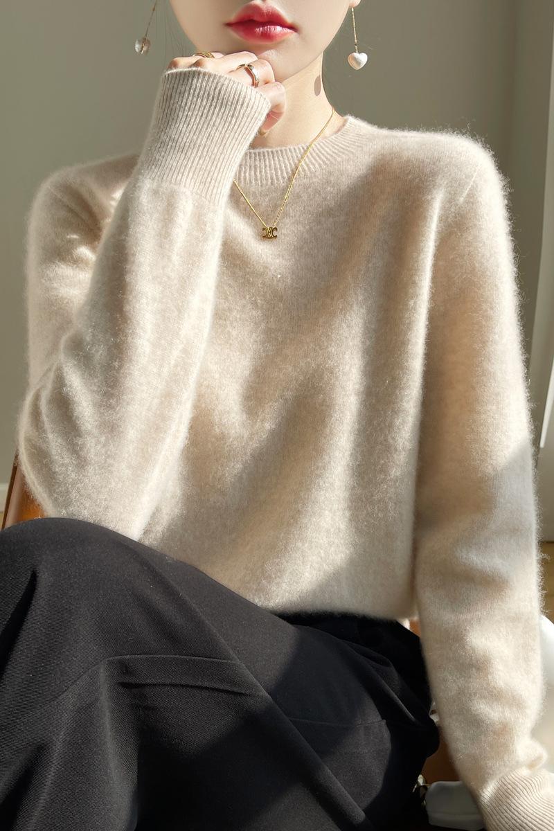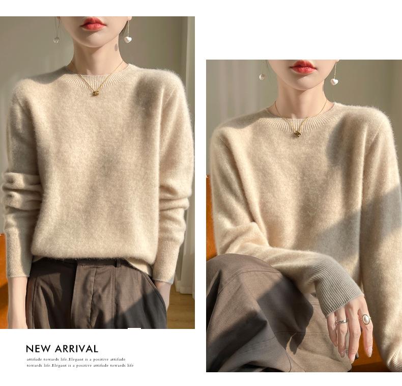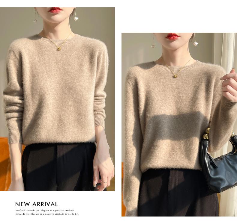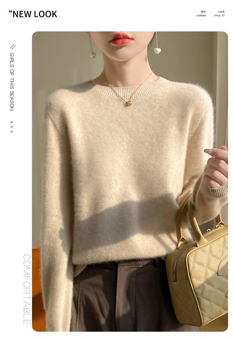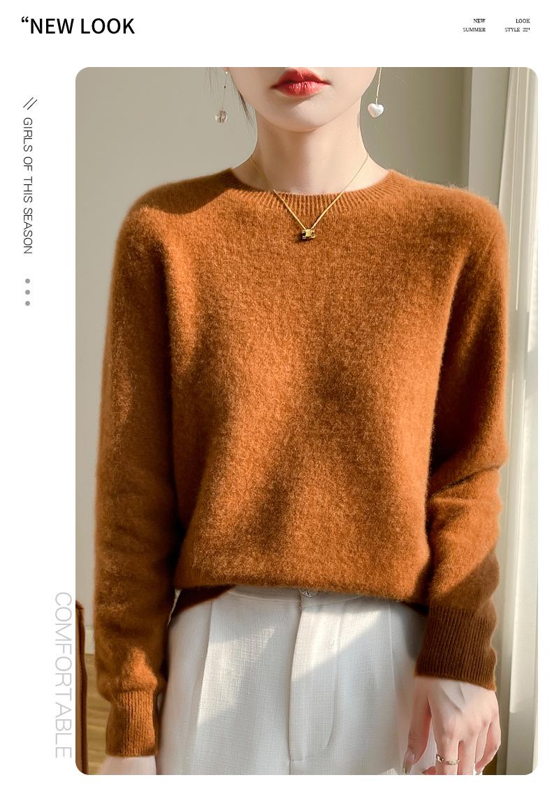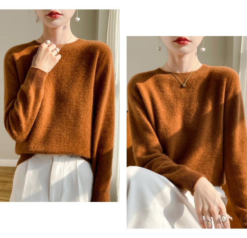 Suéter de Cuello Redondo de Manga Larga para Mujer Prenda de Primera Línea Suéter Base Sin Costuras Simple Nicho Cálido Suéter Interior